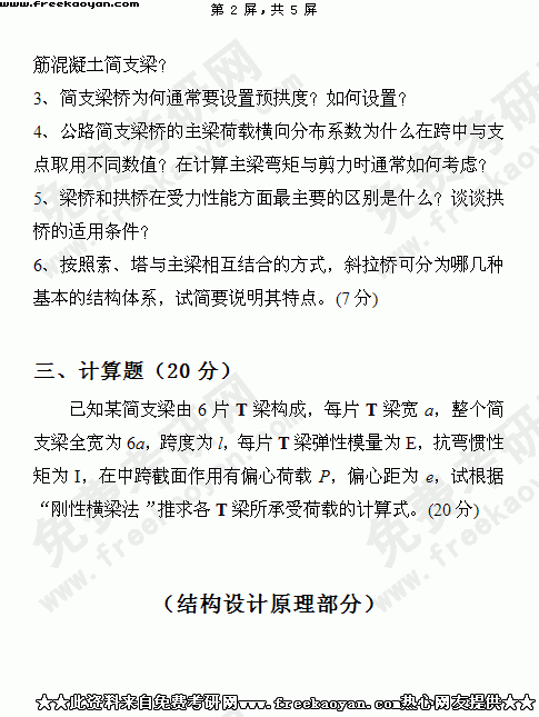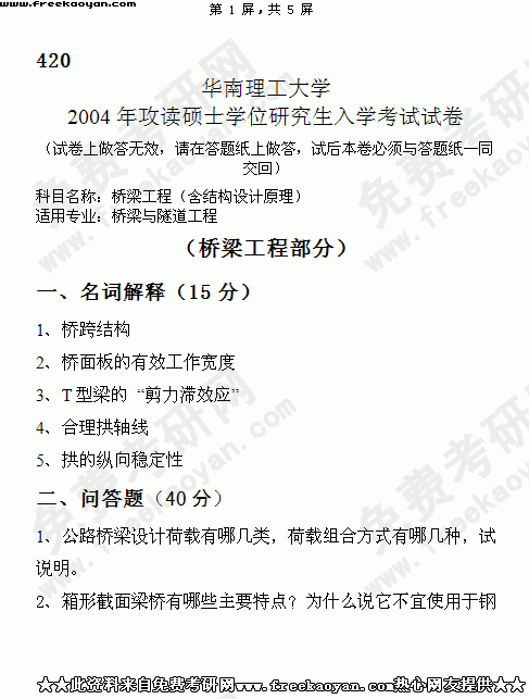 华南理工大学2004年考研真题-桥梁工程(含结构设计原理)