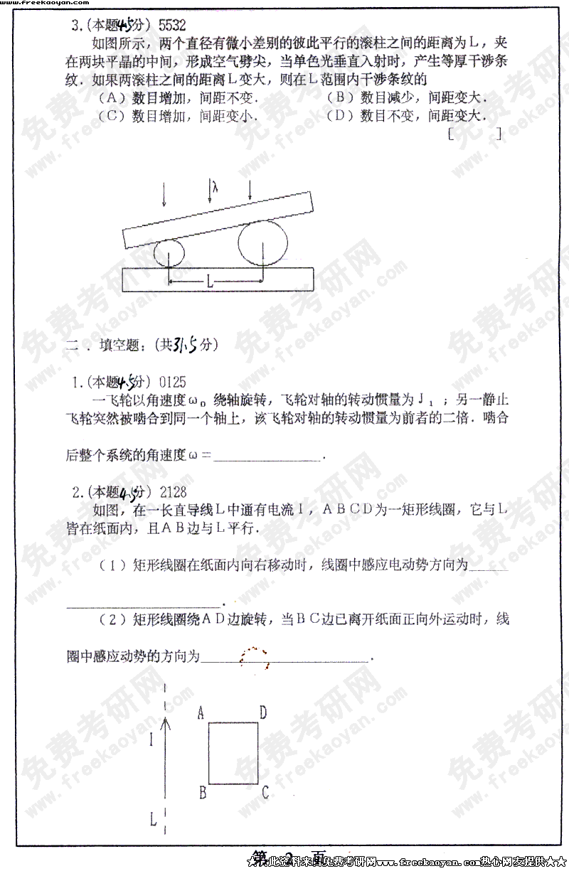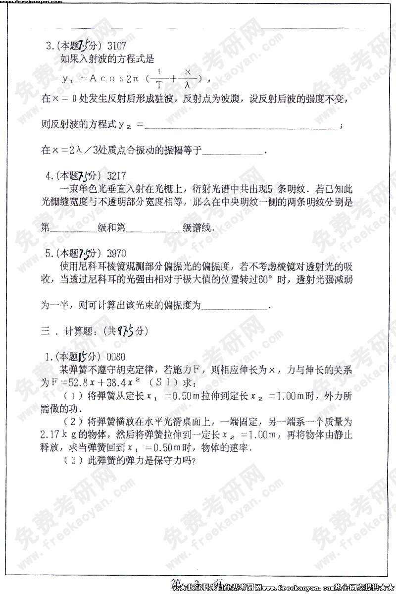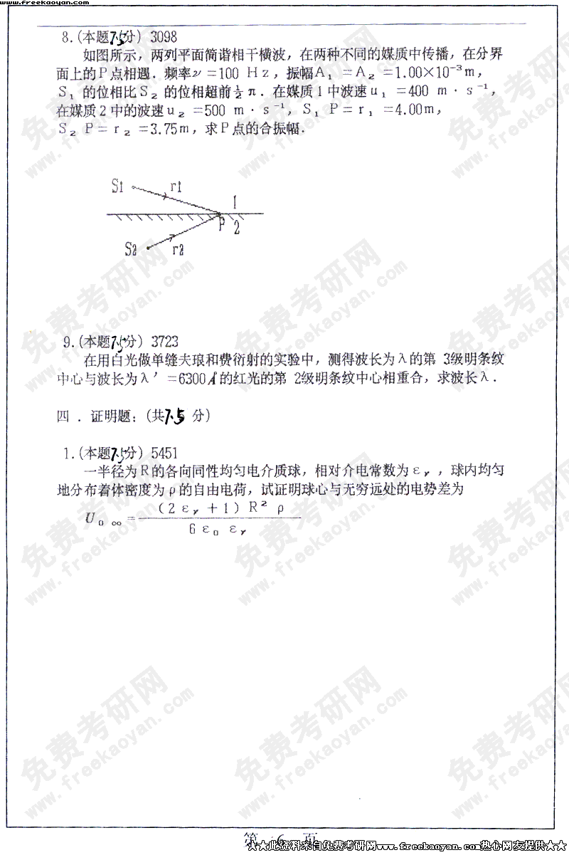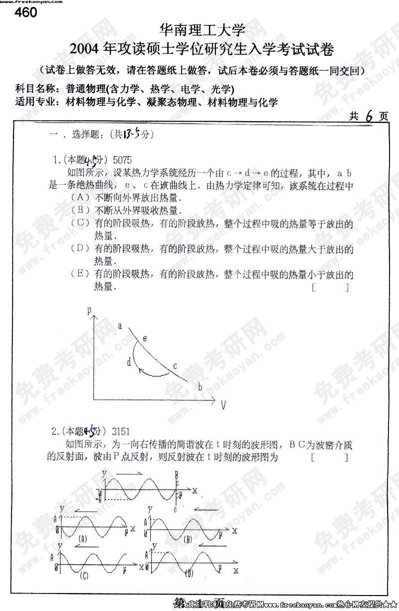 华南理工大学2004年考研真题-普通物理(含力学、热学、电学、光学)