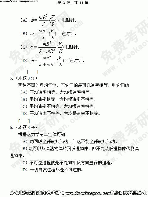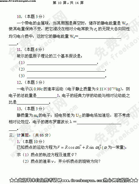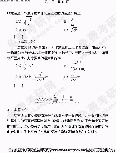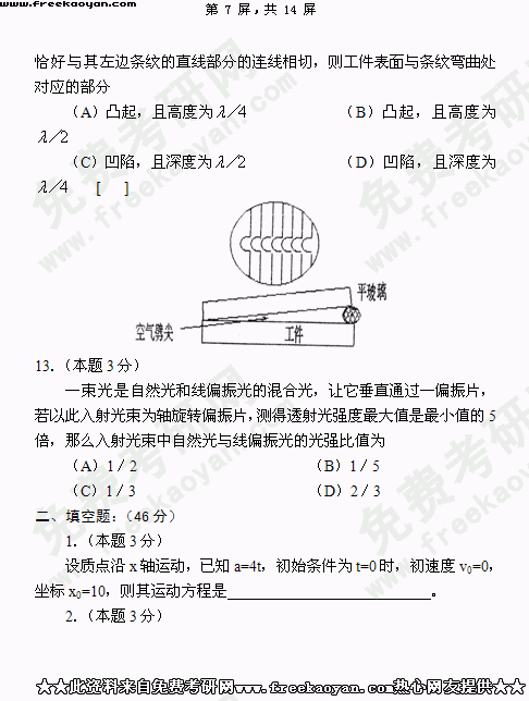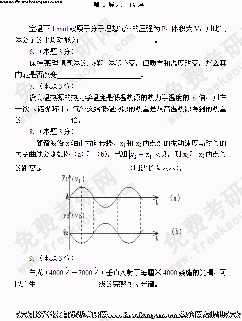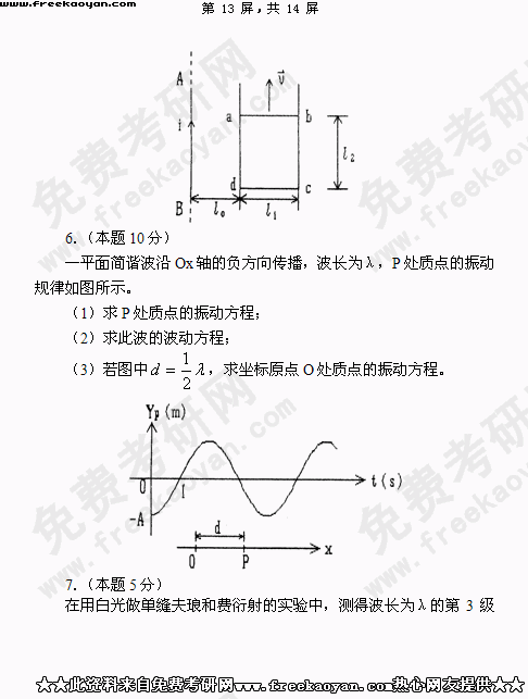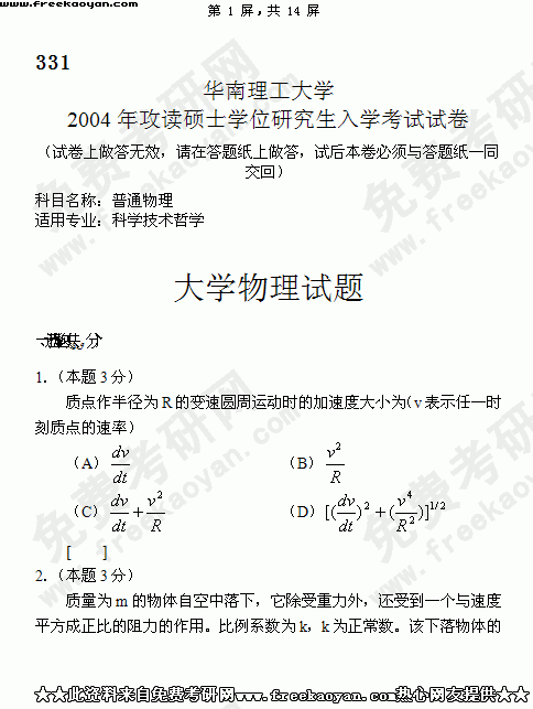 华南理工大学2004年考研真题-普通物理(含力学、热学、电学、光学)