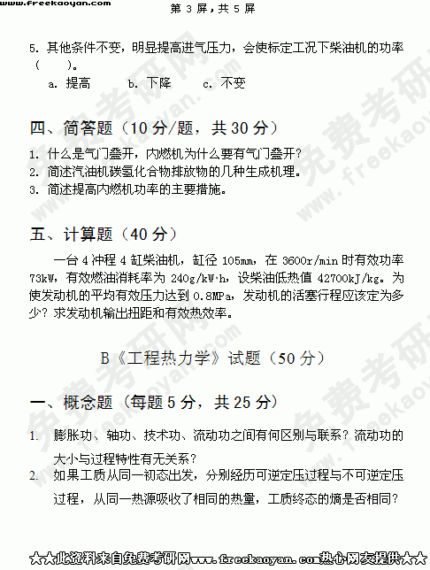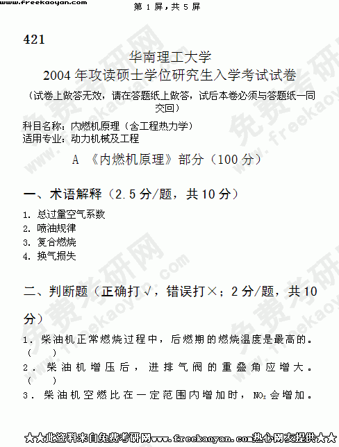华南理工大学2004年考研真题-内燃机原理(含工程热力学)