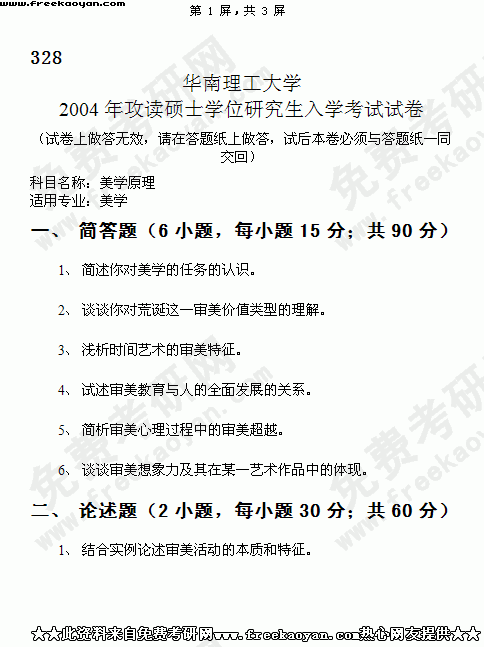 华南理工大学2004年考研真题-普通物理(含力学、热学、电学、光学)