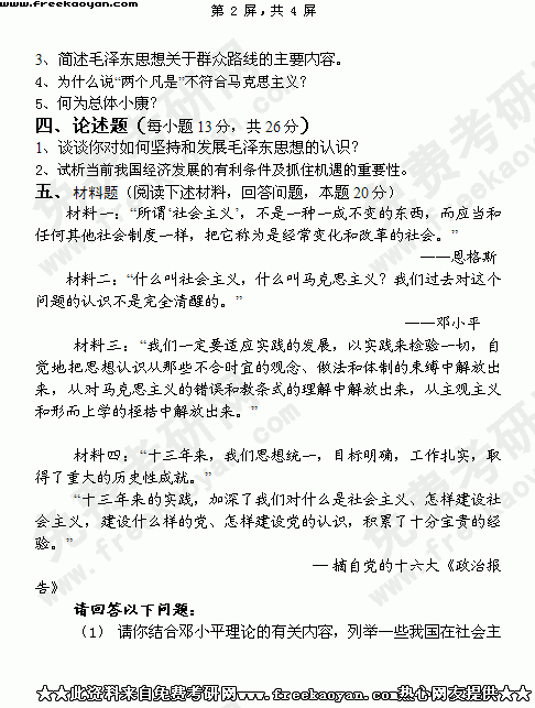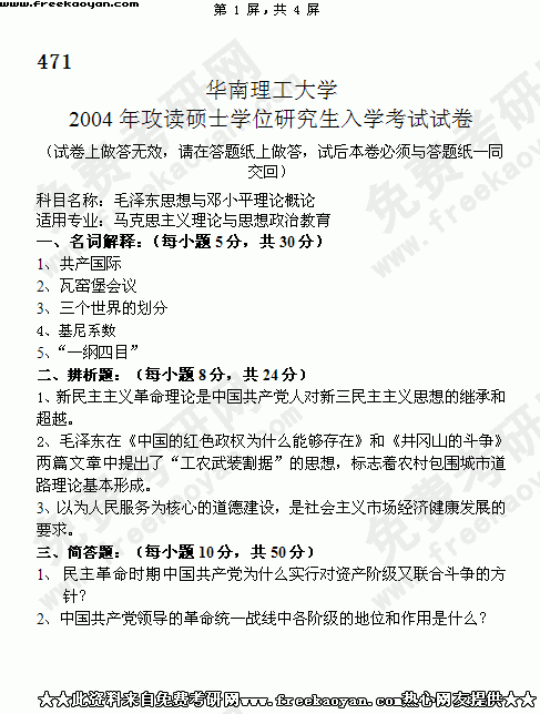 华南理工大学2004年考研真题-毛泽东思想与邓小平理论概论