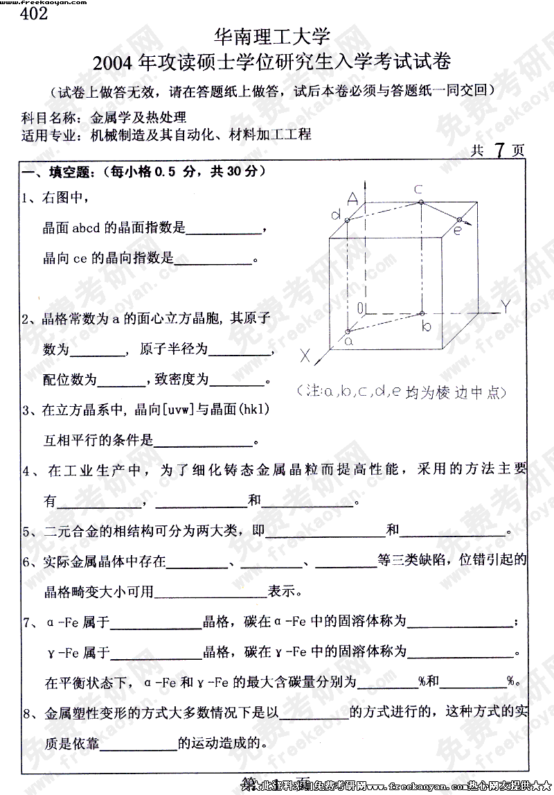 华南理工大学2004年考研真题-普通物理(含力学、热学、电学、光学)
