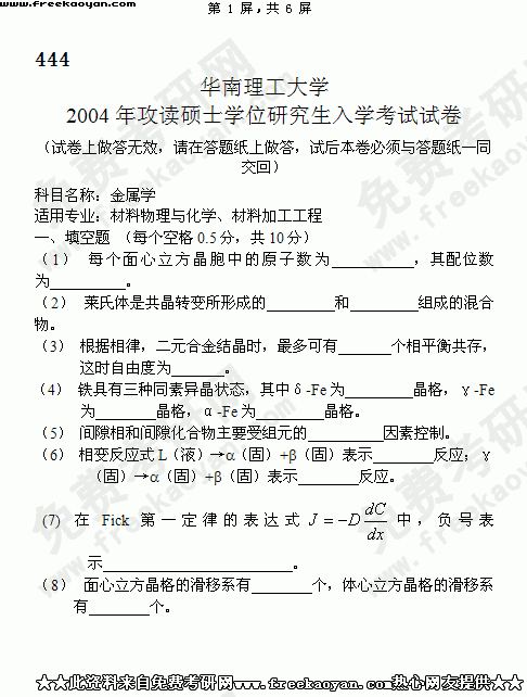 华南理工大学2004年考研真题-普通物理(含力学、热学、电学、光学)