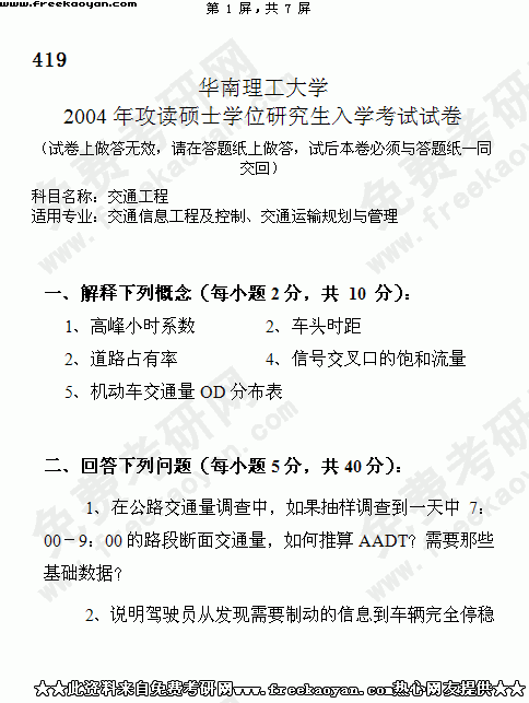 华南理工大学2004年考研真题-内燃机原理(含工程热力学)