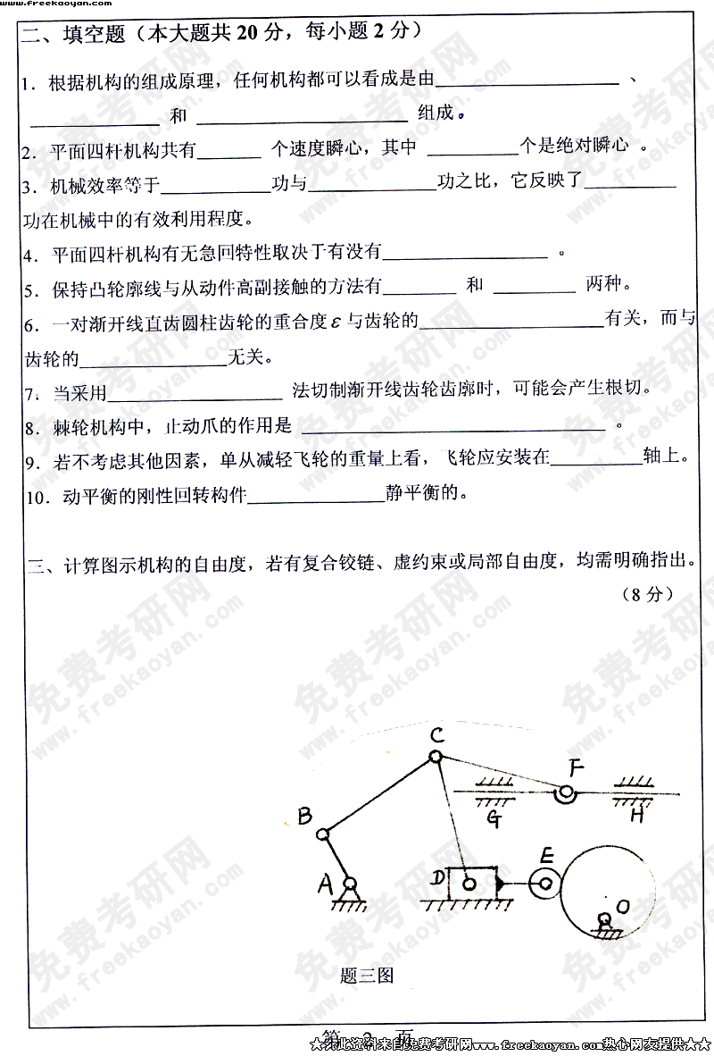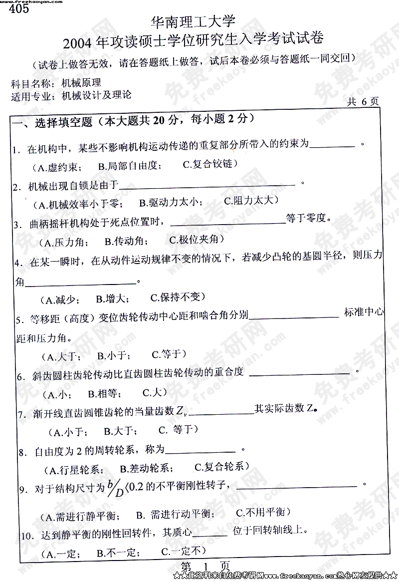 华南理工大学2004年考研真题-机械原理