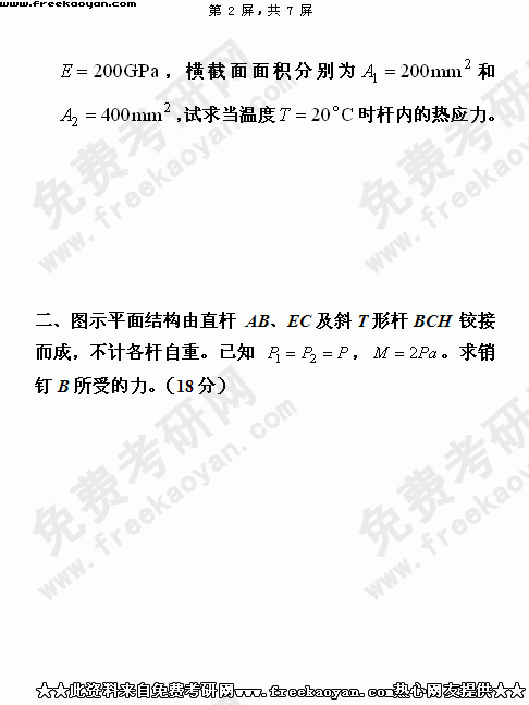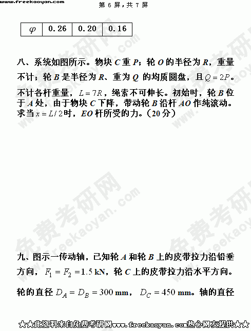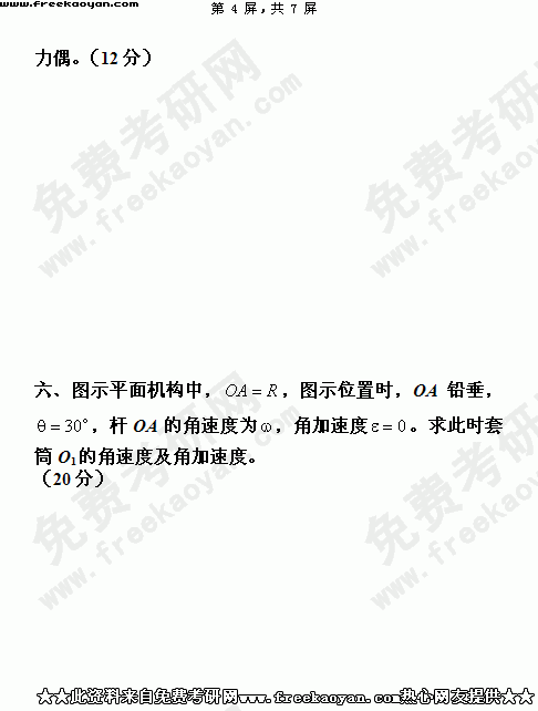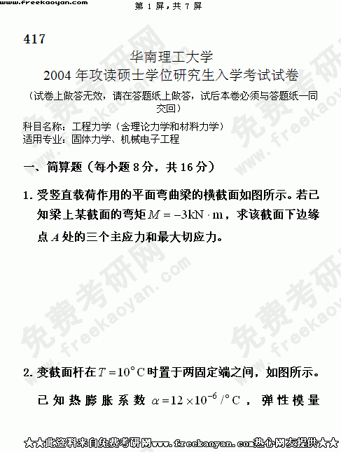 华南理工大学2004年考研真题-工程力学(含理论力学和材料力学)