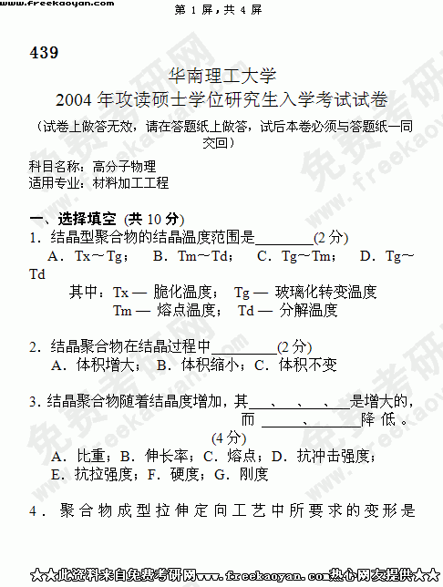 华南理工大学2004年考研真题-过程装备腐蚀与防护