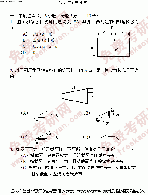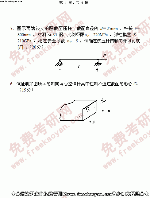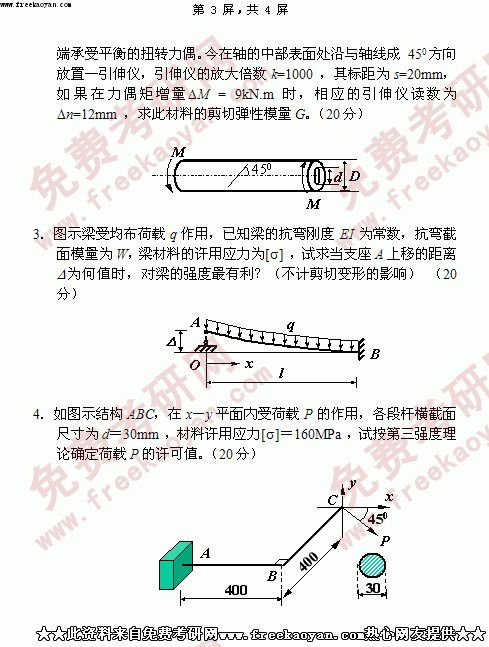 华南理工大学2004年考研真题-工程力学(含理论力学和材料力学)