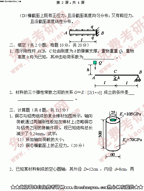 华南理工大学2005年考研真题-船舶静力学含材料力学