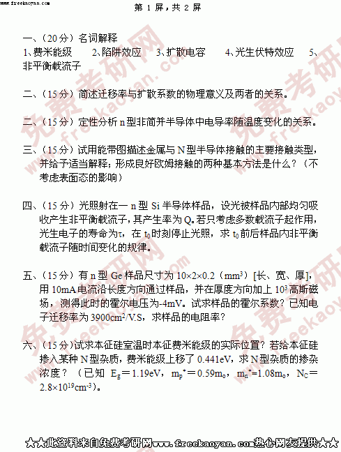 专业课考研经验 本站小编 FreeKaoyan 2018-01-22华南理工大学2004年考研真题-高分子物理