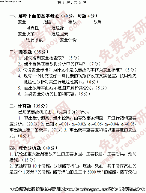 华南理工大学2005年考研真题-安全系统工程