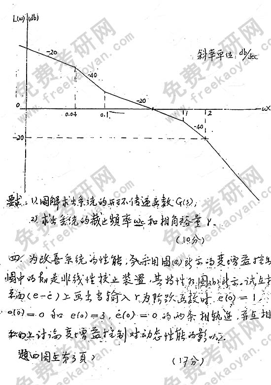 华南理工大学2000年考研真题-自动控制原理(含现代控制理论基础和自动控制系统)