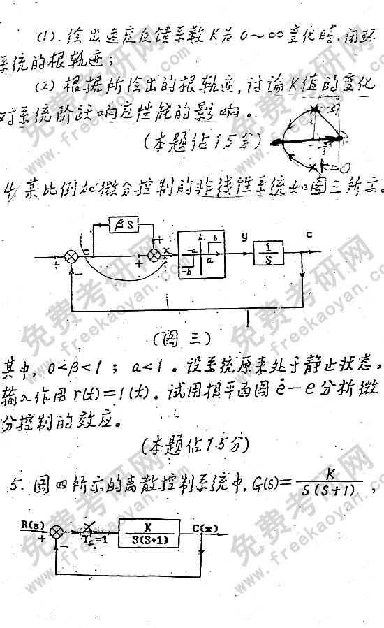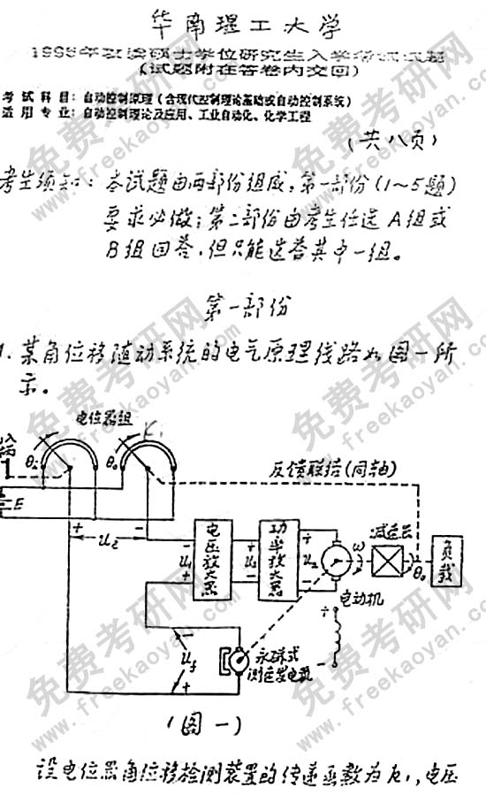 华南理工大学1999年考研真题-自动控制原理(含现代控制理论基础和自动控制系统)