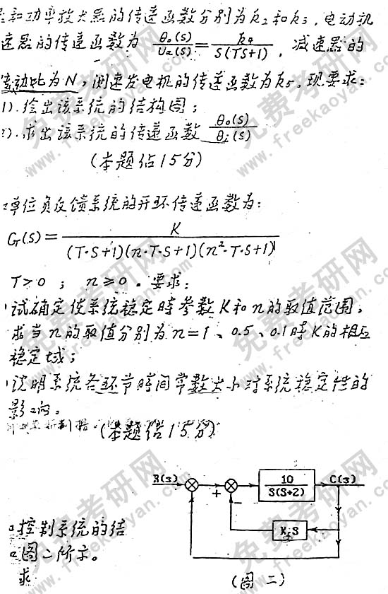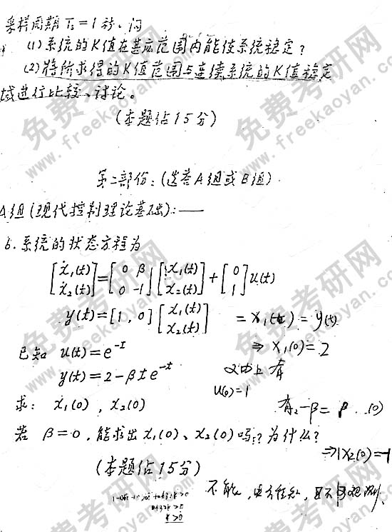华南理工大学2000年考研真题-自动控制原理(含现代控制理论基础和自动控制系统)