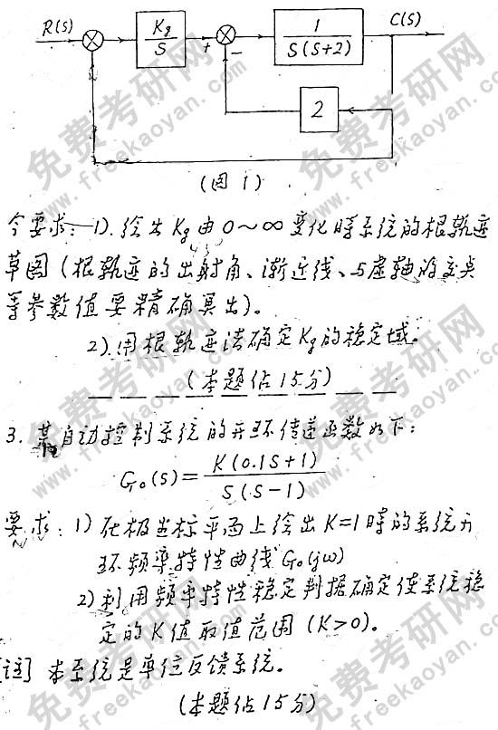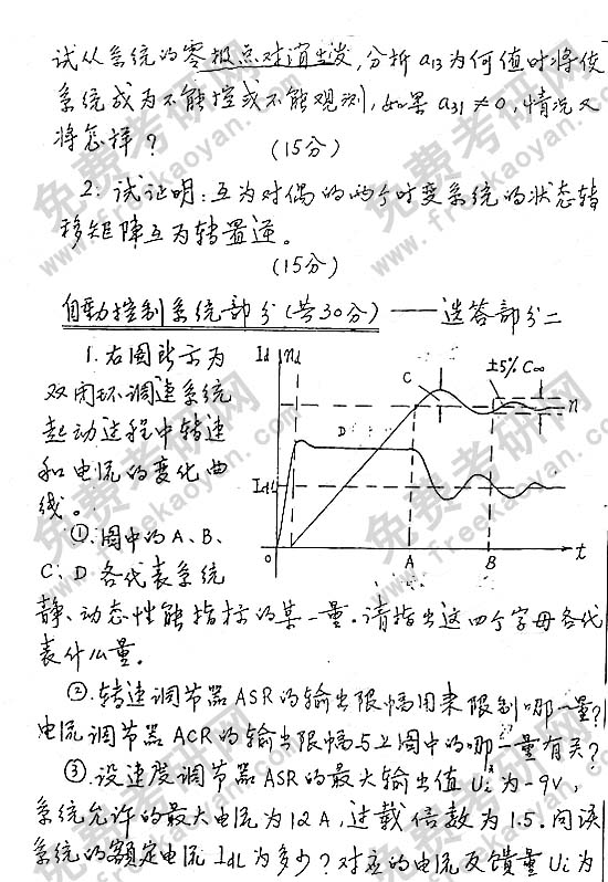 华南理工大学2000年考研真题-自动控制原理(含现代控制理论基础和自动控制系统)