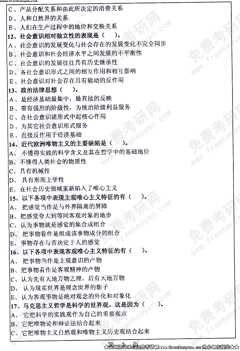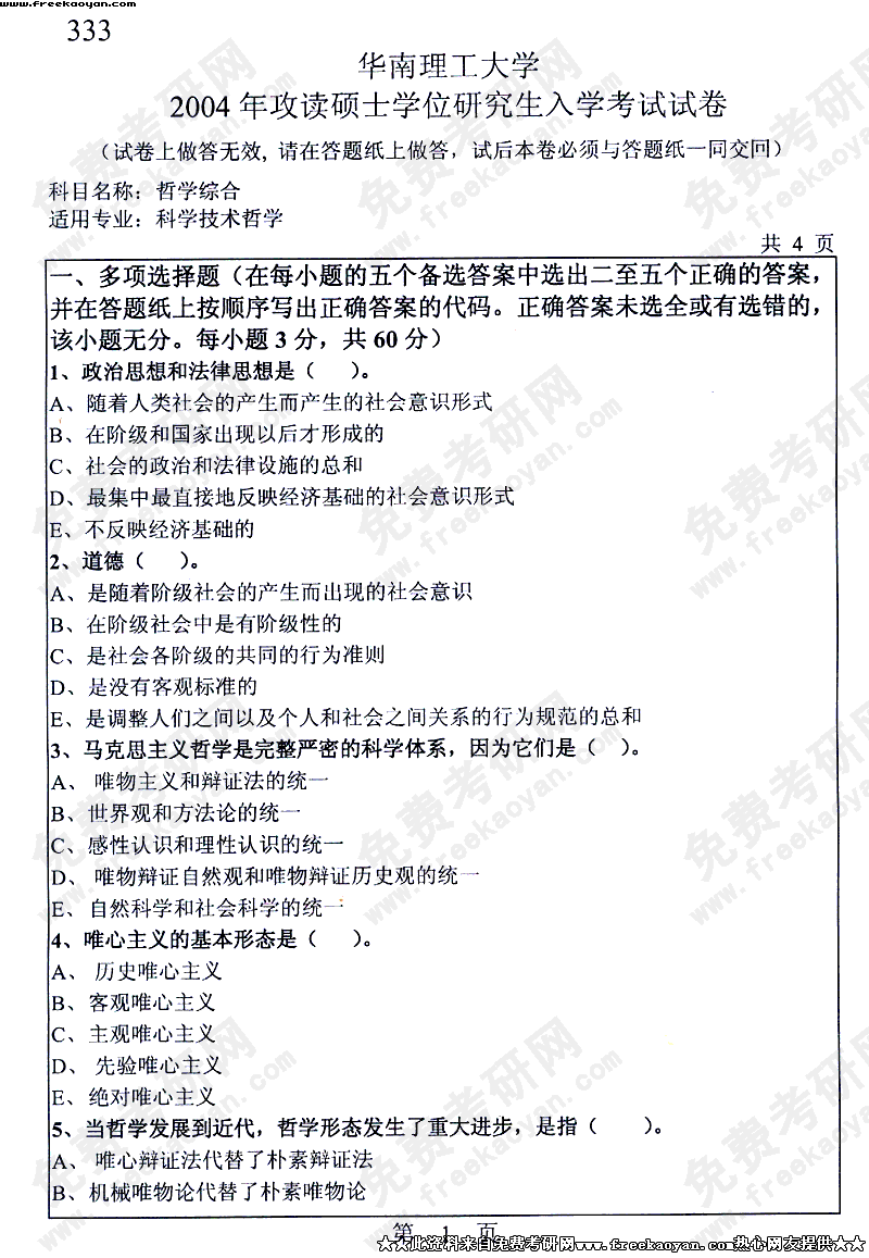 华南理工大学2004年考研真题-综合考试(含政治学、经济学)
