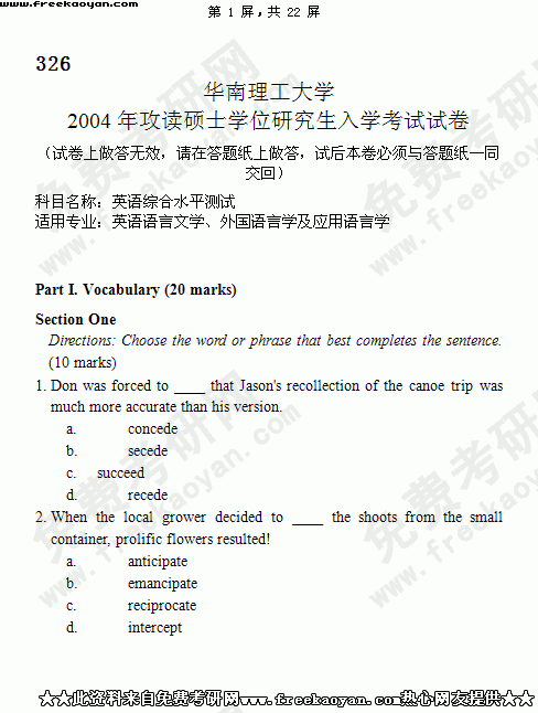 华南理工大学2004年考研真题-语言学和英美文学基础知识