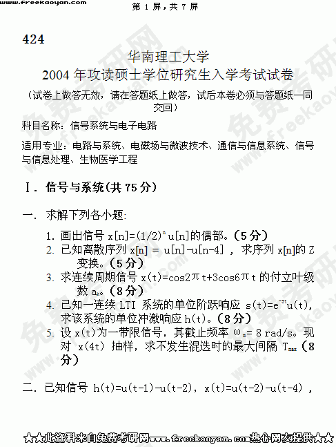 华南理工大学2004年考研真题-语言学和英美文学基础知识