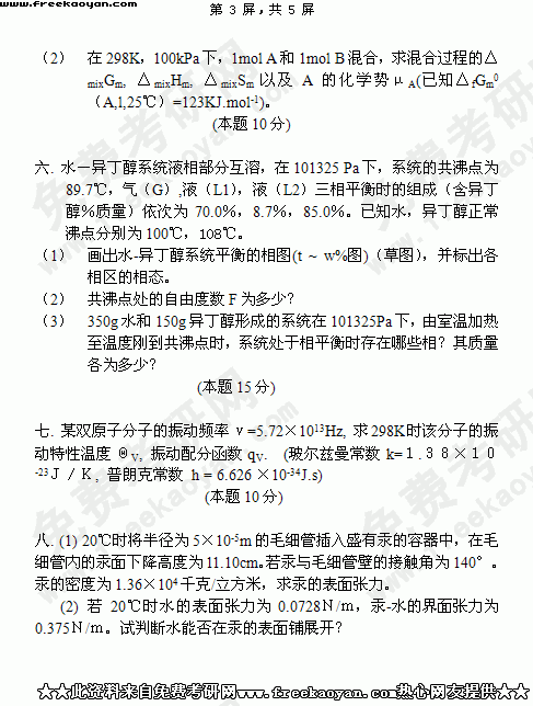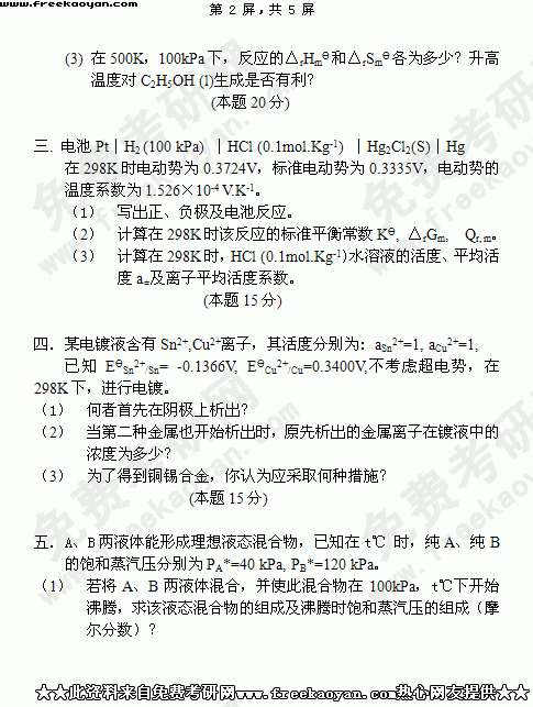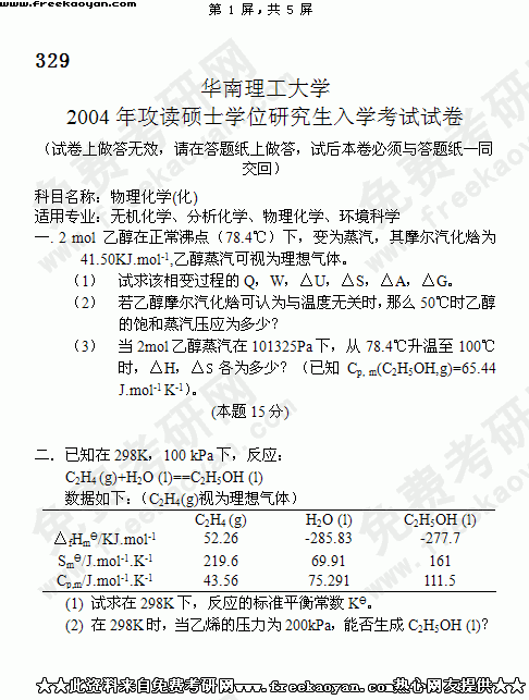 华南理工大学2004年考研真题-制冷技术(含工程热力学)