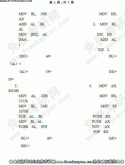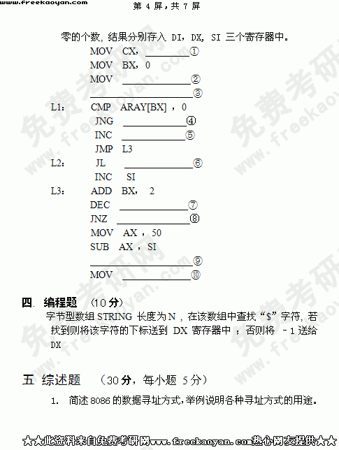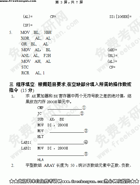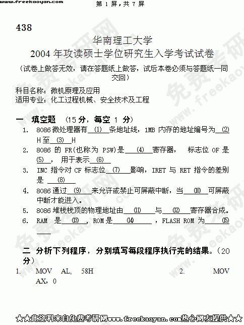 华南理工大学2004年考研真题-微型计算机原理及应用