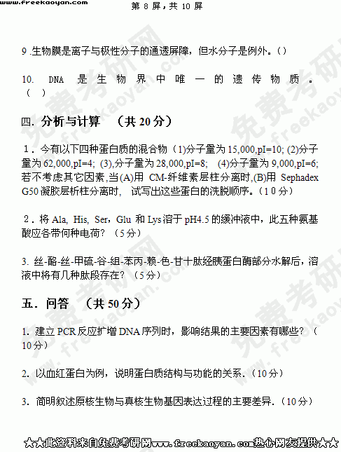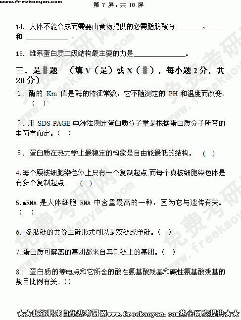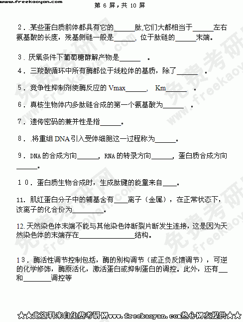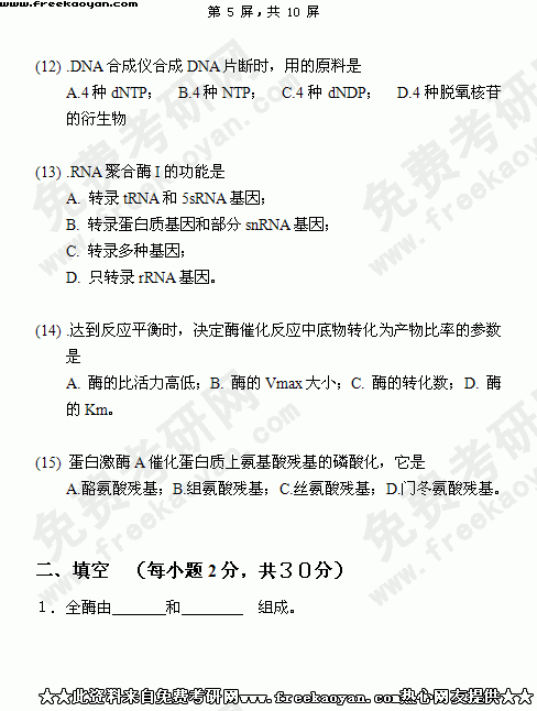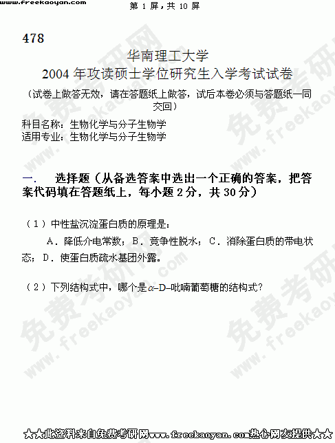 华南理工大学2004年考研真题-生物化学与分子生物学