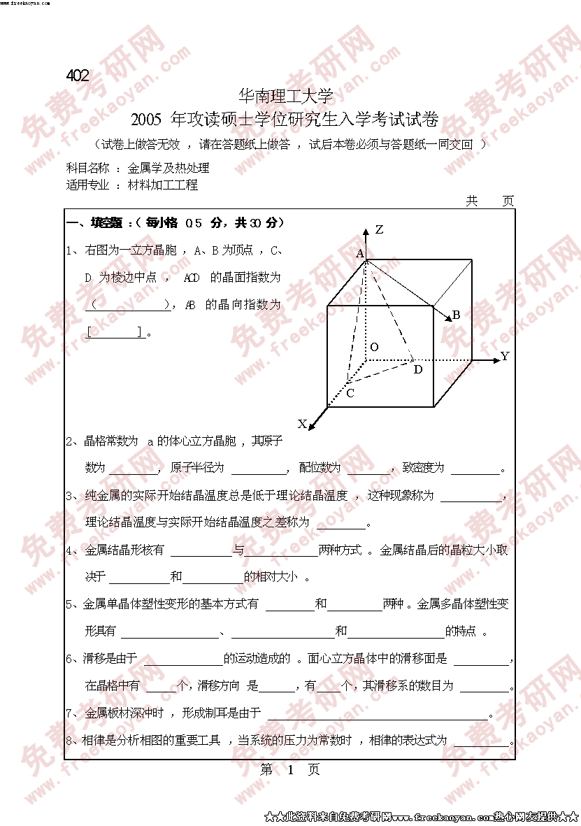华南理工大学2004年考研真题-生物化学与分子生物学
