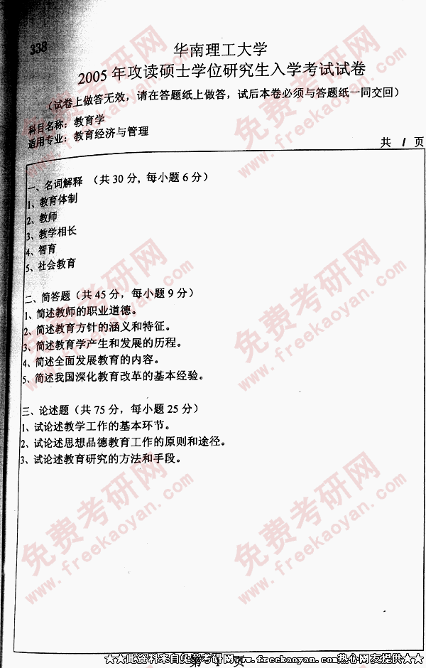 相关话题/华南理工大学 考研真题 教育学