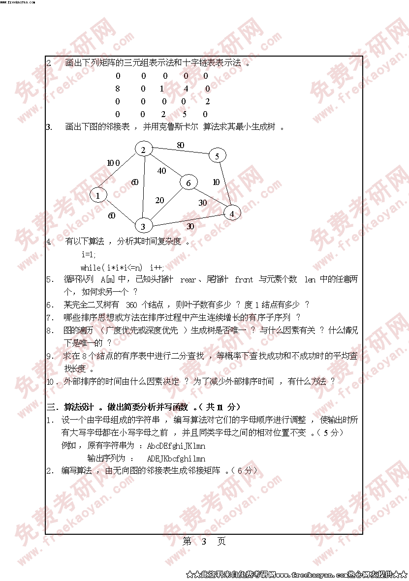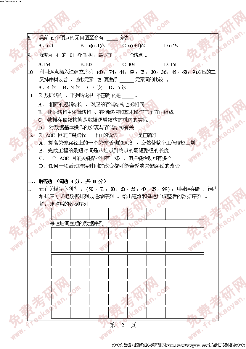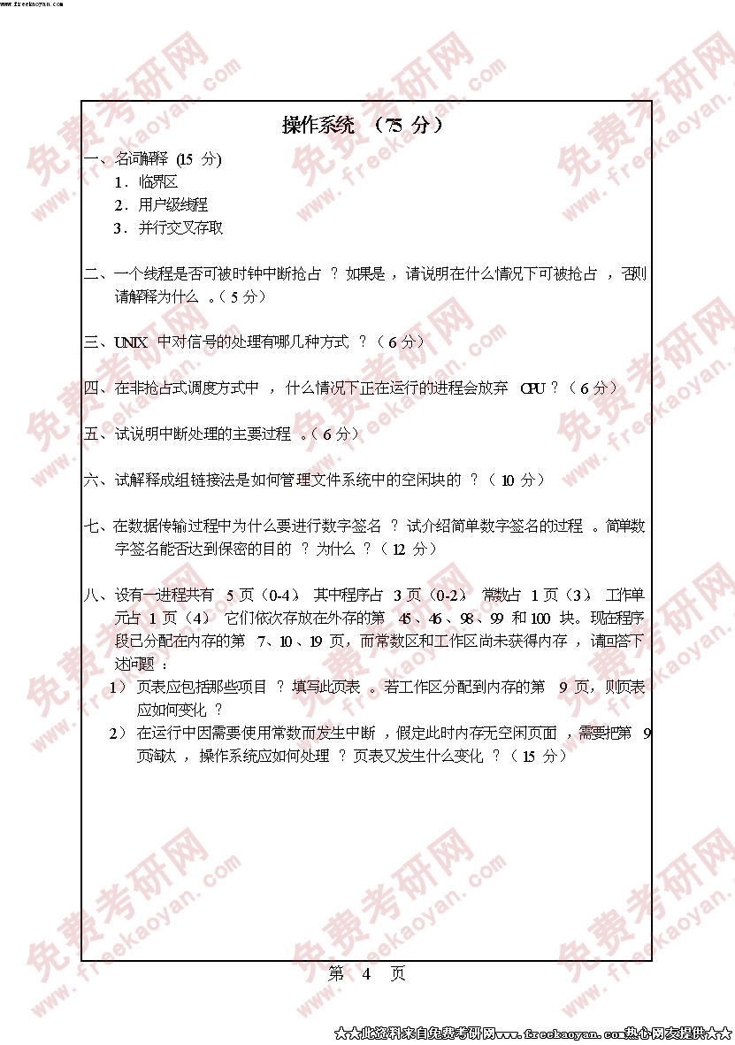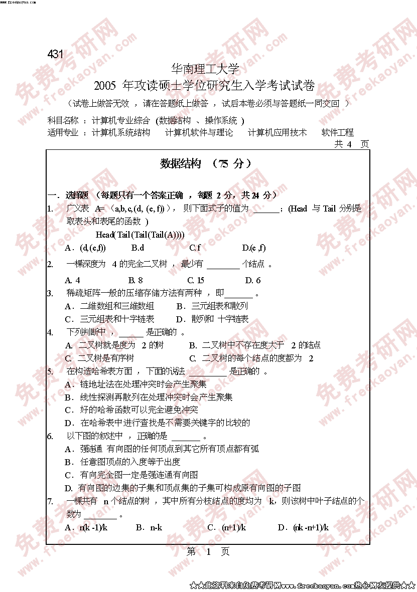 华南理工大学2005年考研真题-计算机专业综合数据结构、操作系统