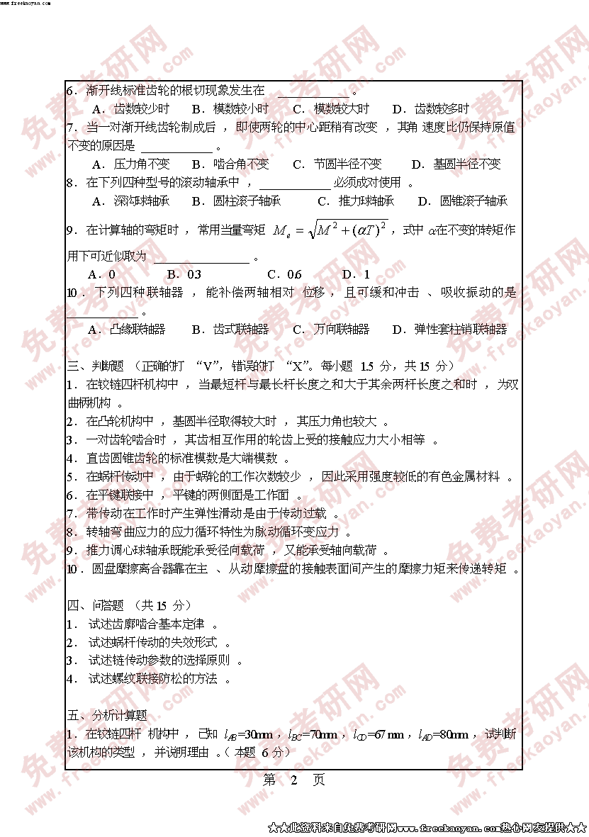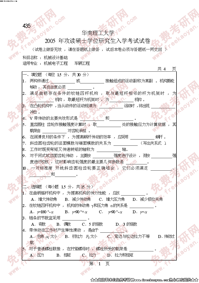 华南理工大学2005年考研真题-机械设计基础