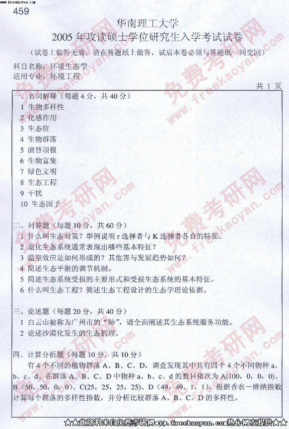 相关话题/考研真题 华南理工大学 生态学 环境