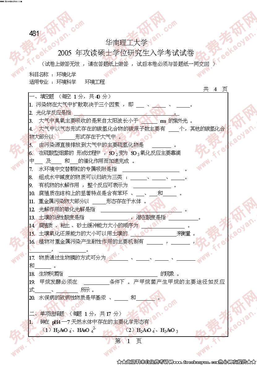 华南理工大学2005年考研真题-基础物理含力热电光与近代物理