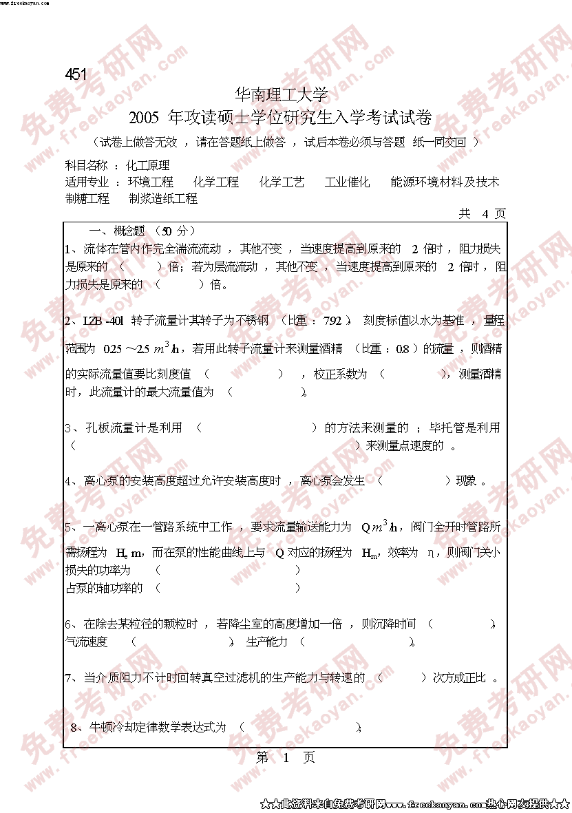 华南理工大学2005年考研真题-基础物理含力热电光与近代物理