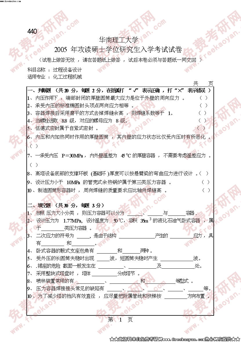 华南理工大学2005年考研真题-过程装备腐蚀与防护