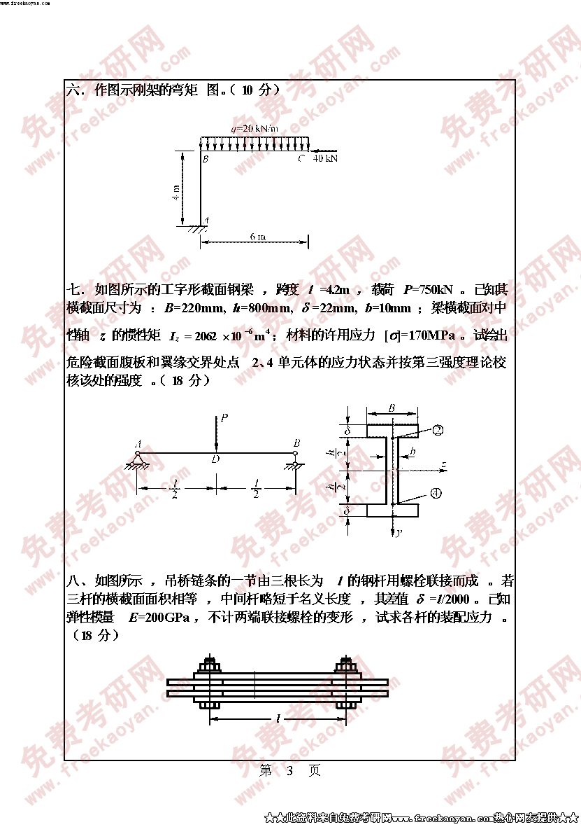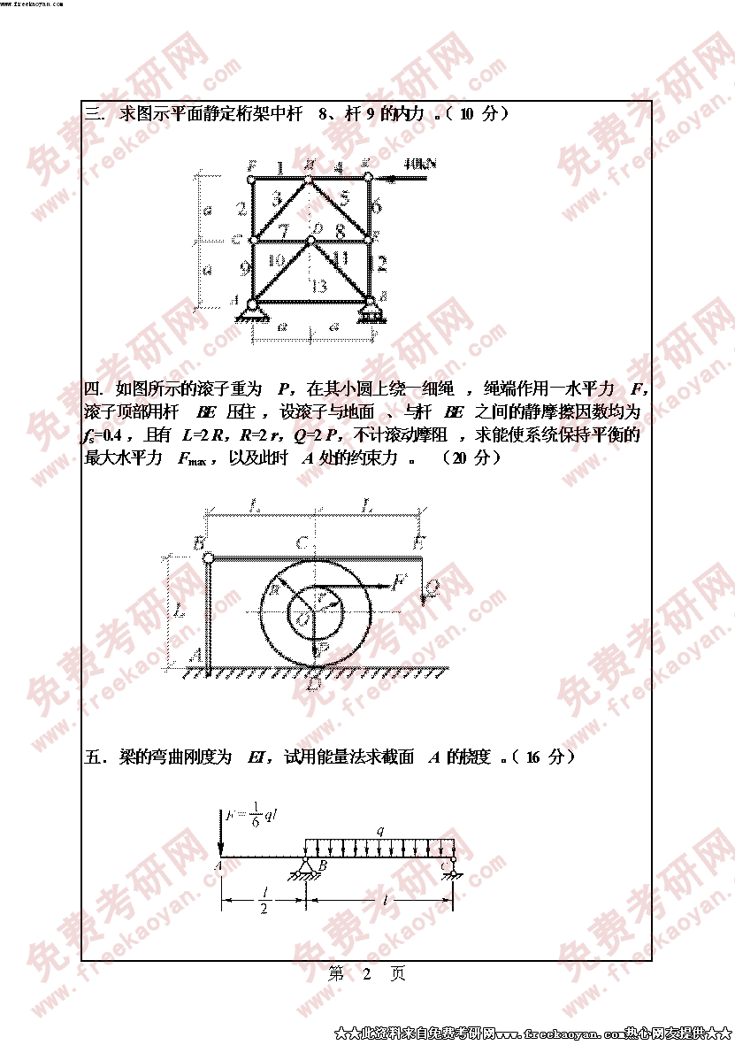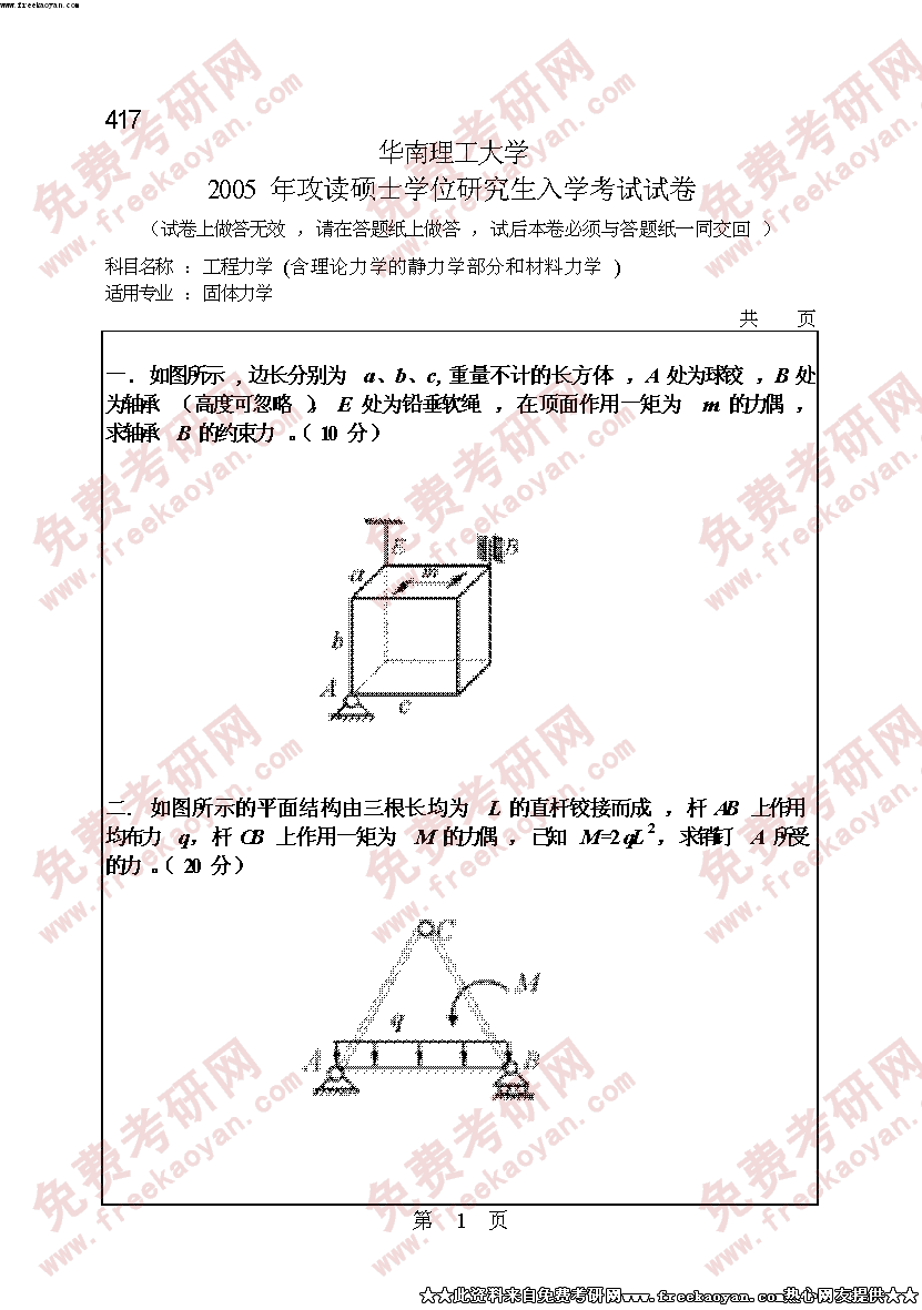 华南理工大学2005年考研真题-工程力学含理论力学的静力学部分和材料力学