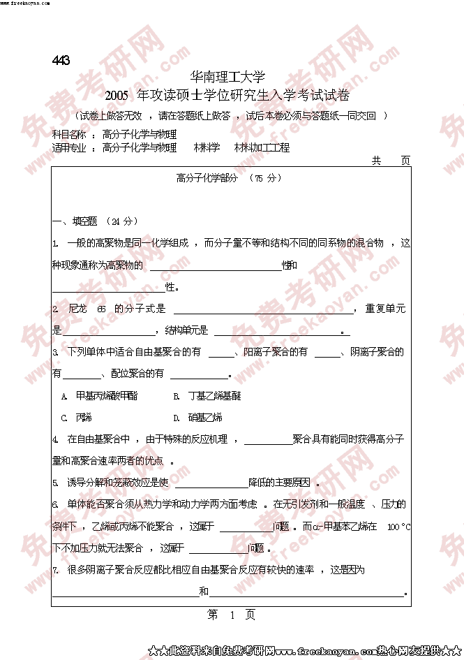 华南理工大学2005年考研真题-过程装备腐蚀与防护