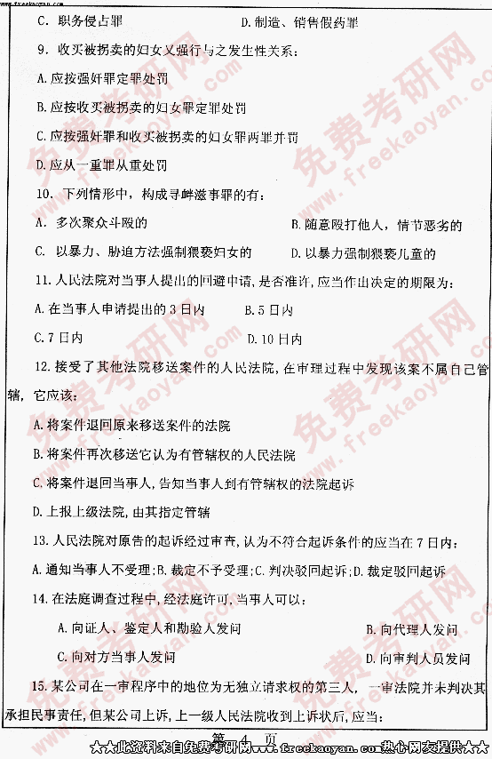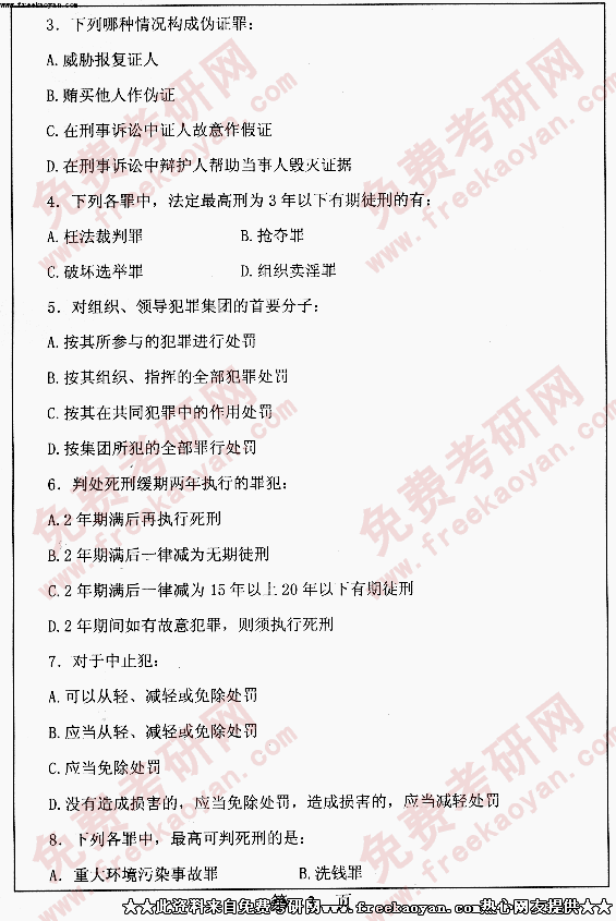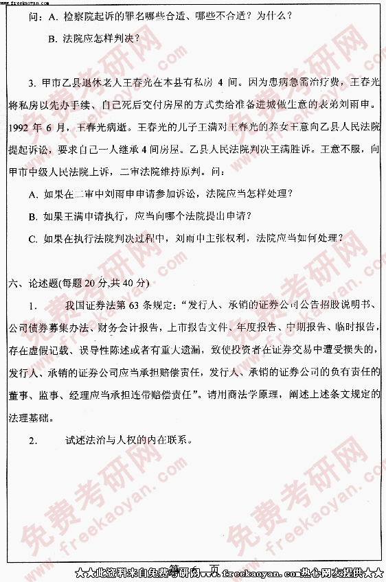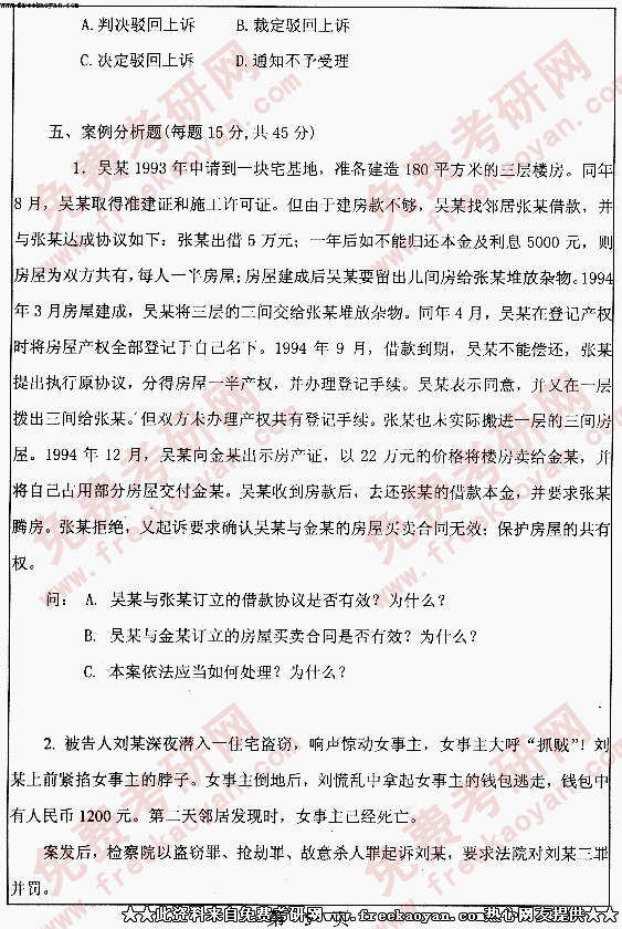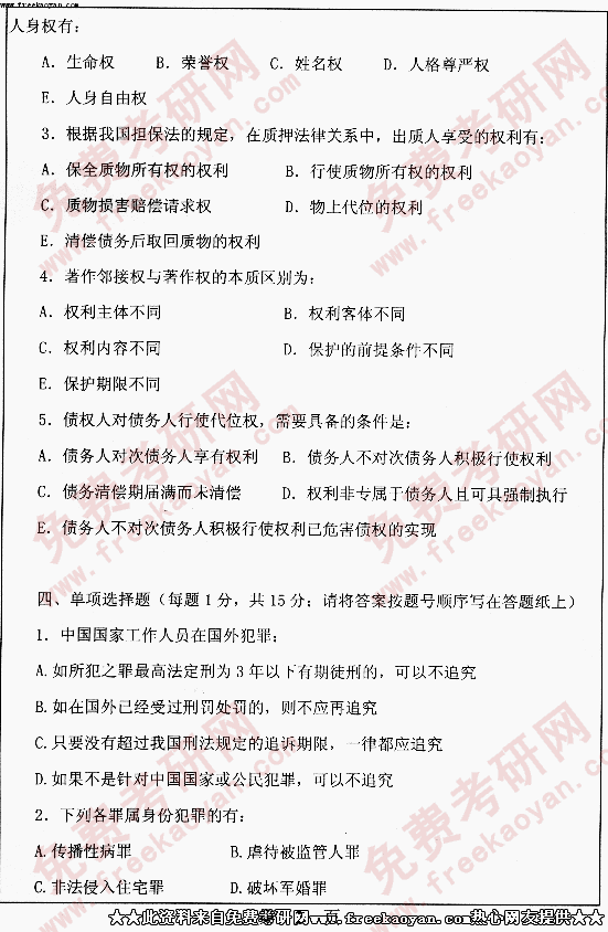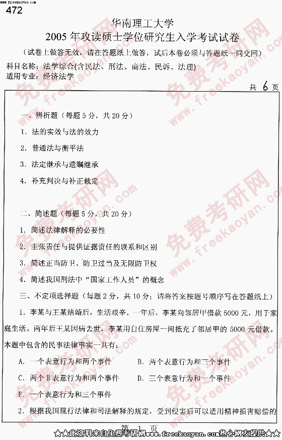 华南理工大学2005年考研真题-法学综合含民法、刑法、商法、民诉