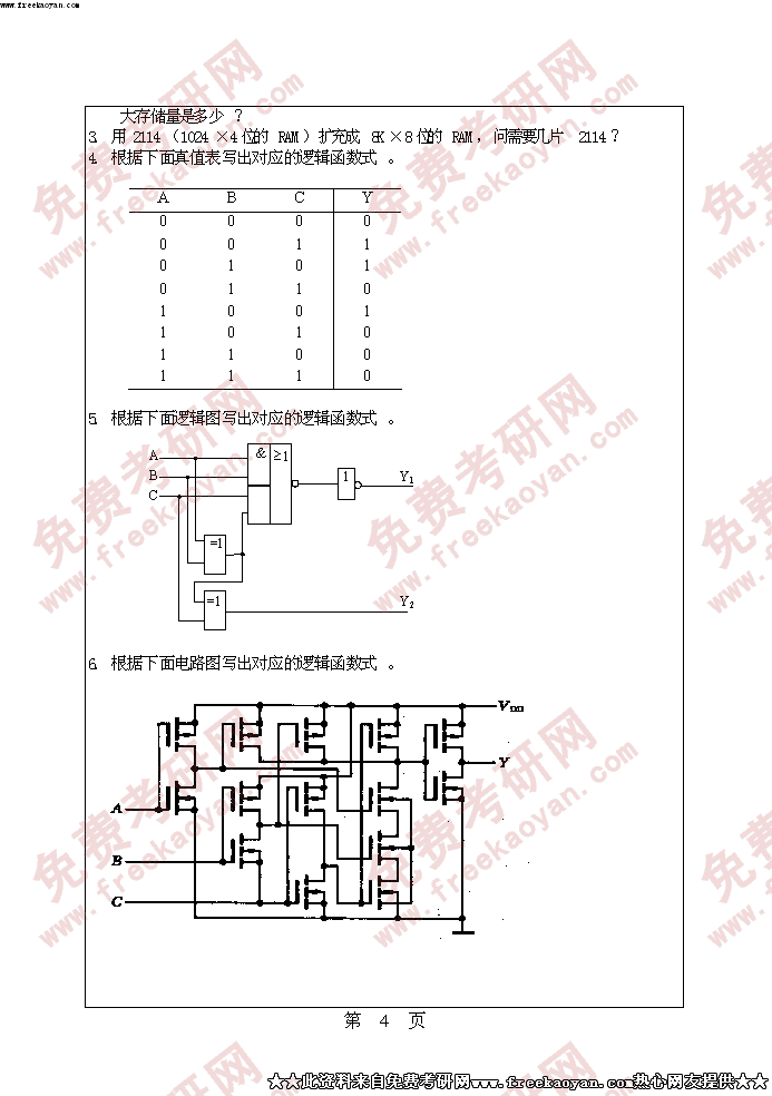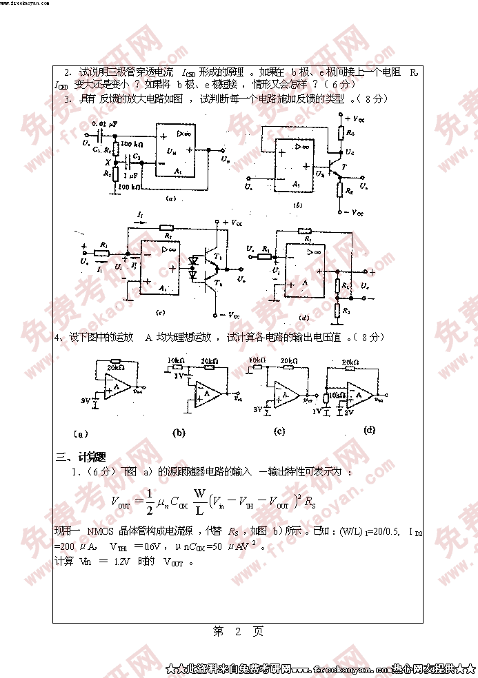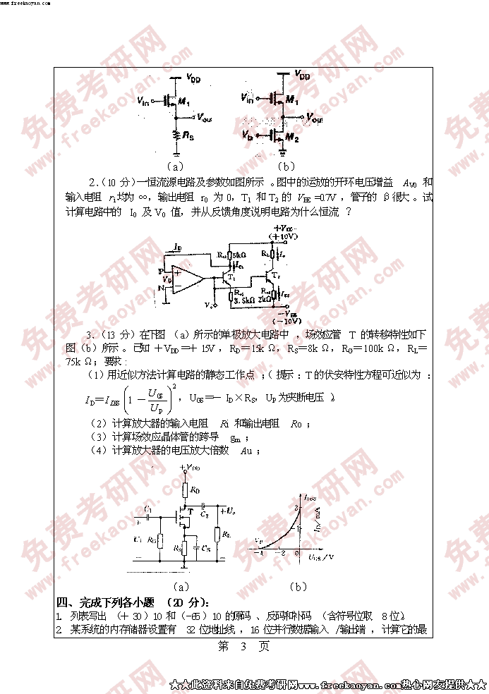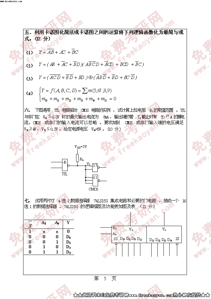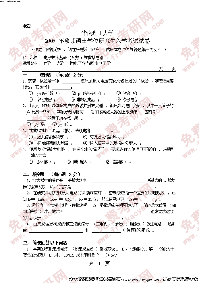 华南理工大学2005年考研真题-电子技术基础含数字与模拟电路