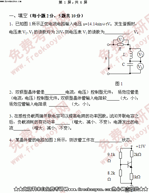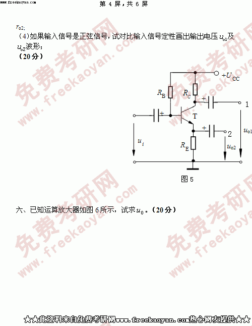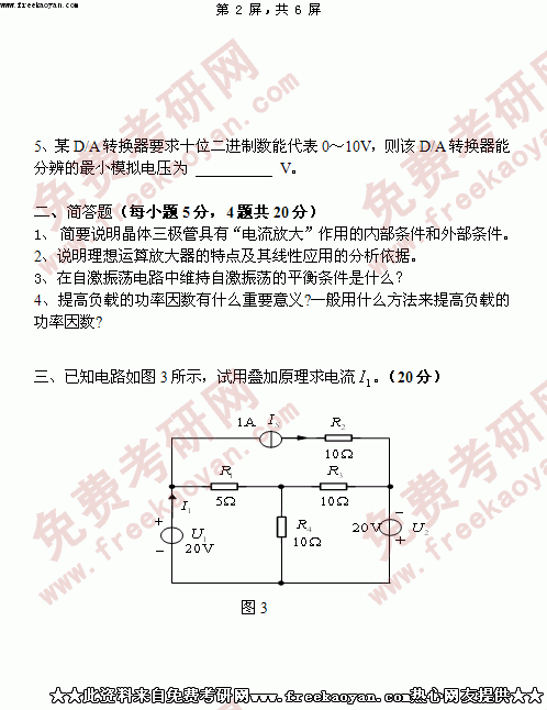 华南理工大学2005年考研真题-电子技术基础含数字与模拟电路