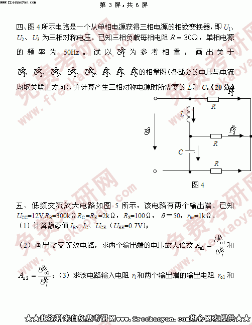 华南理工大学2005年考研真题-电路与电子技术含电路原理低频电子电路和数字电路