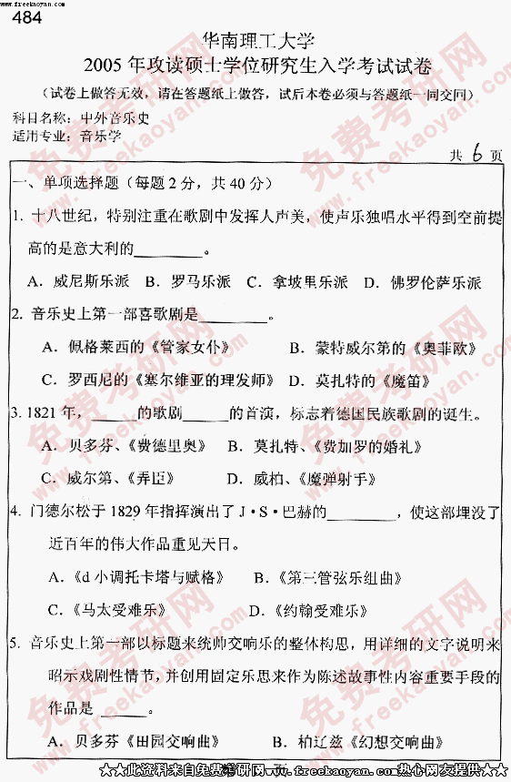 华南理工大学2005年考研真题-综合考试含政治学、经济学