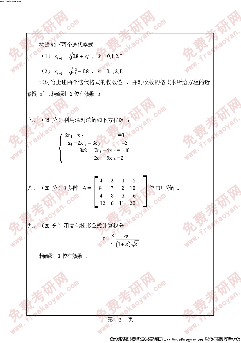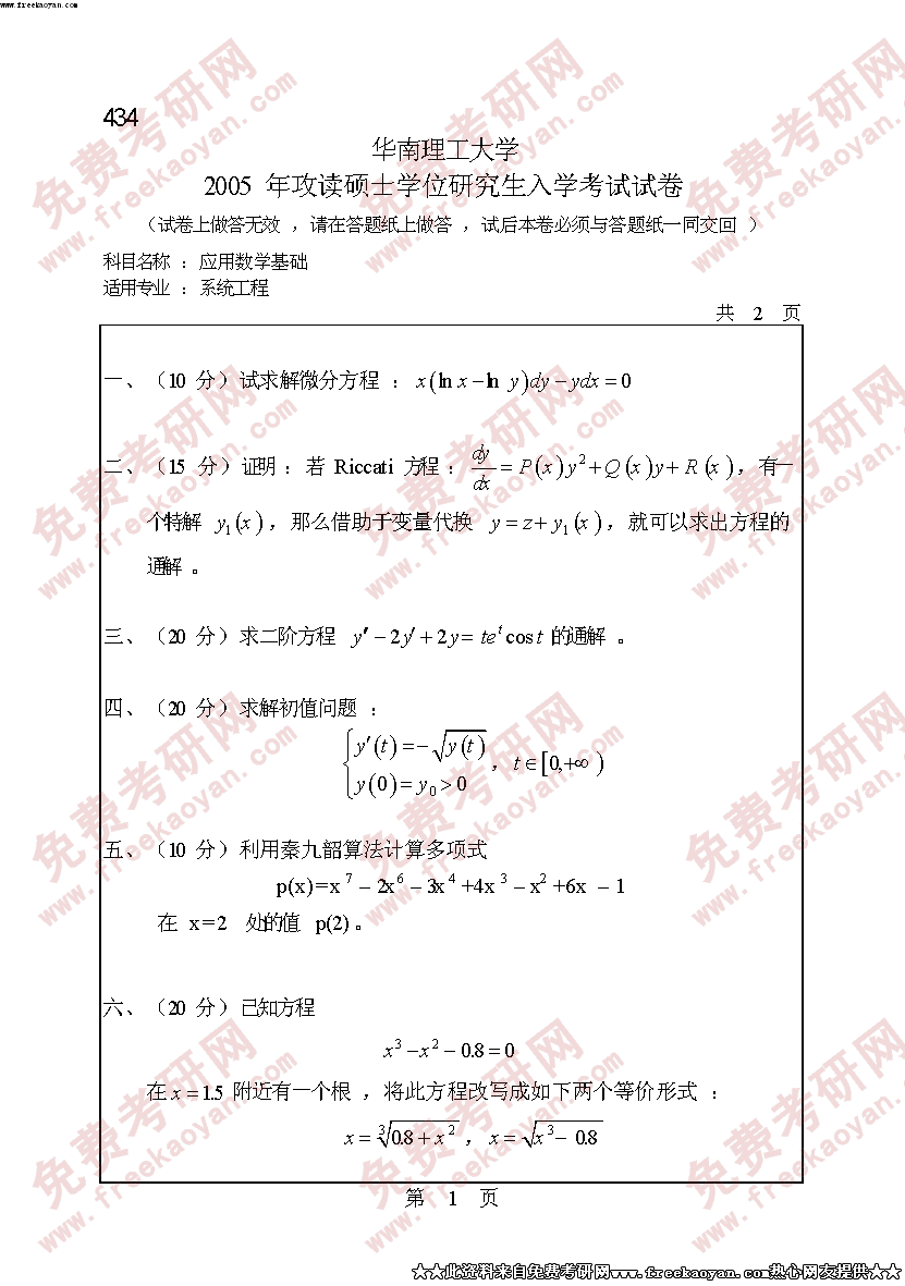 华南理工大学2005年考研真题-应用数学基础含计算方法、常微分方程