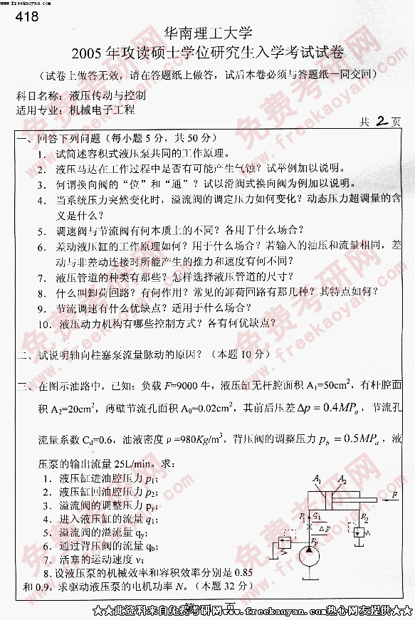 华南理工大学2005年考研真题-应用数学基础含计算方法、常微分方程