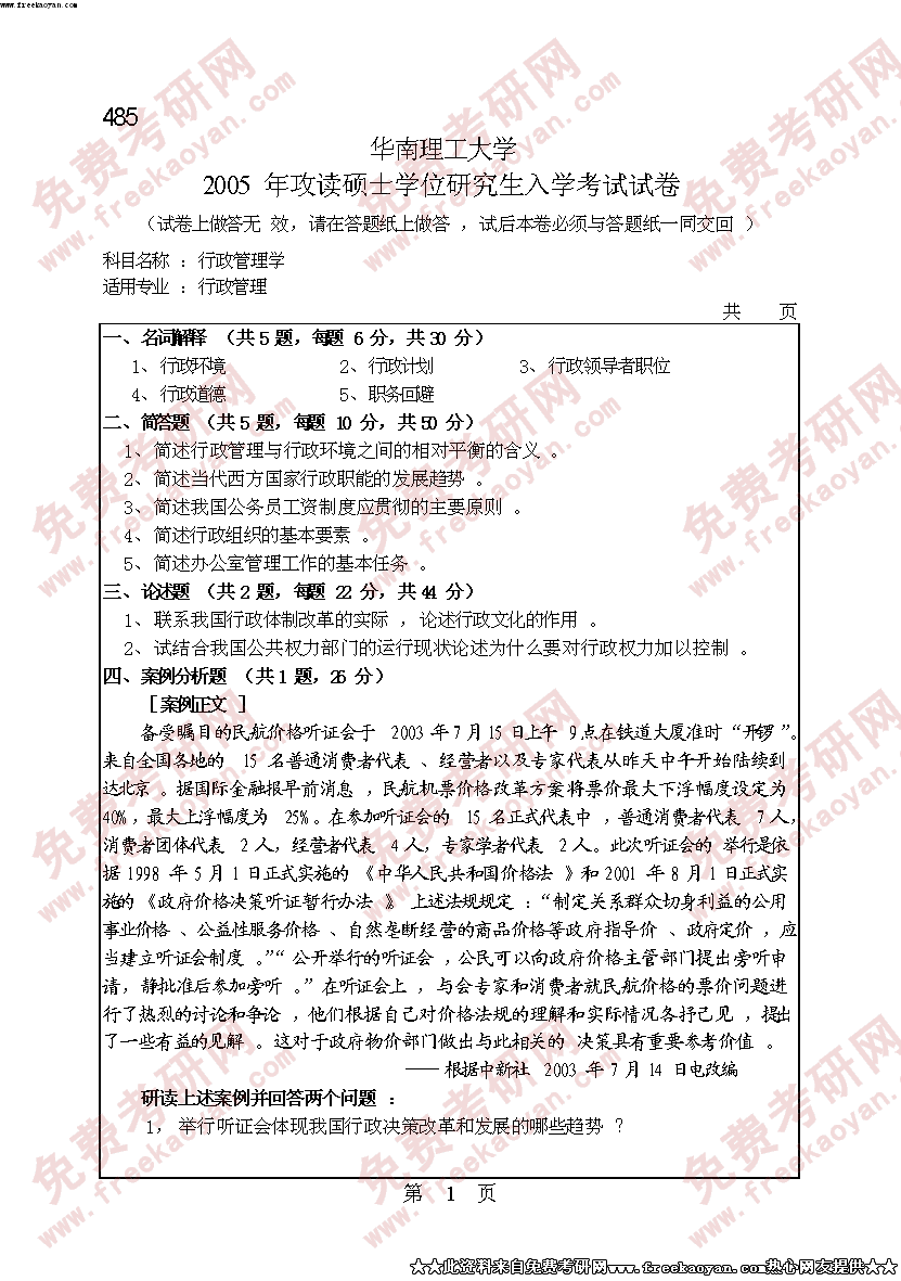 华南理工大学2005年考研真题-语言学和英美文学基础知识