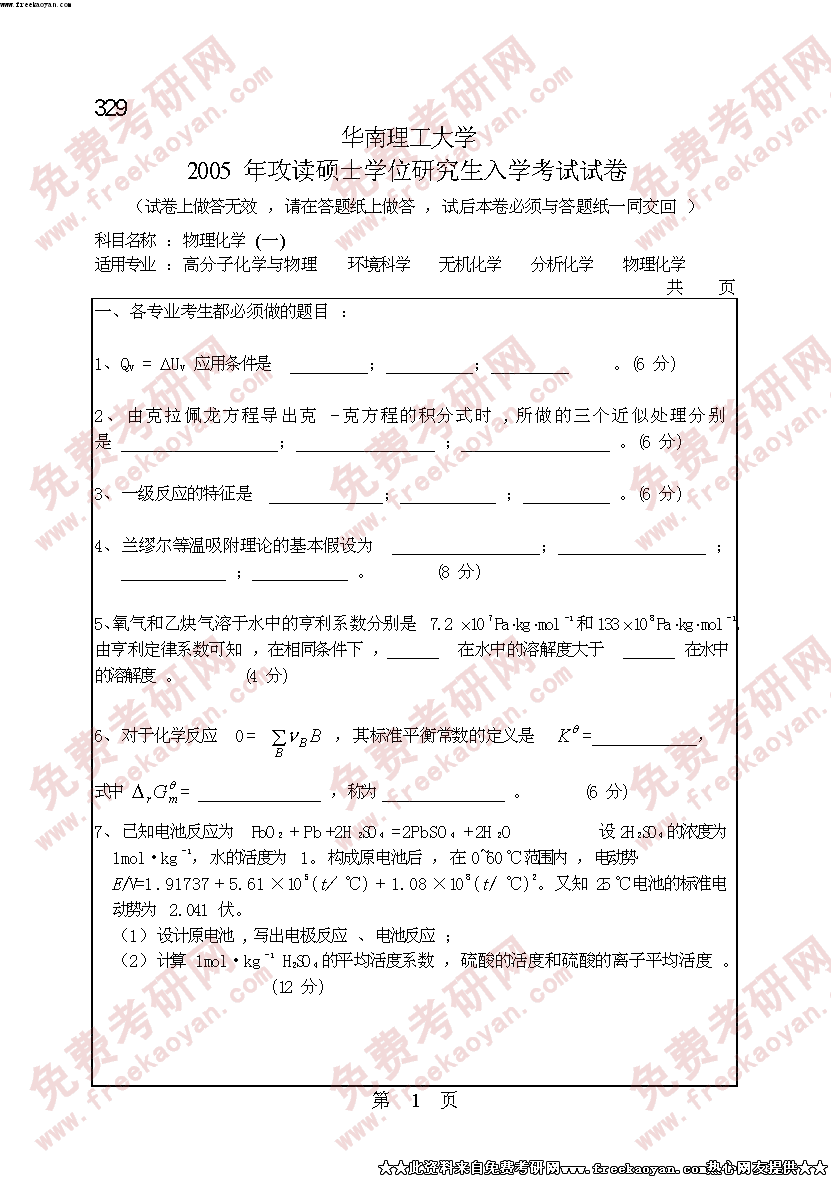 华南理工大学2005年考研真题-应用数学基础含计算方法、常微分方程