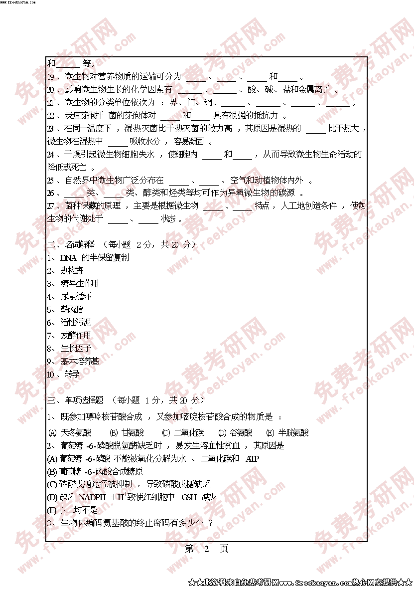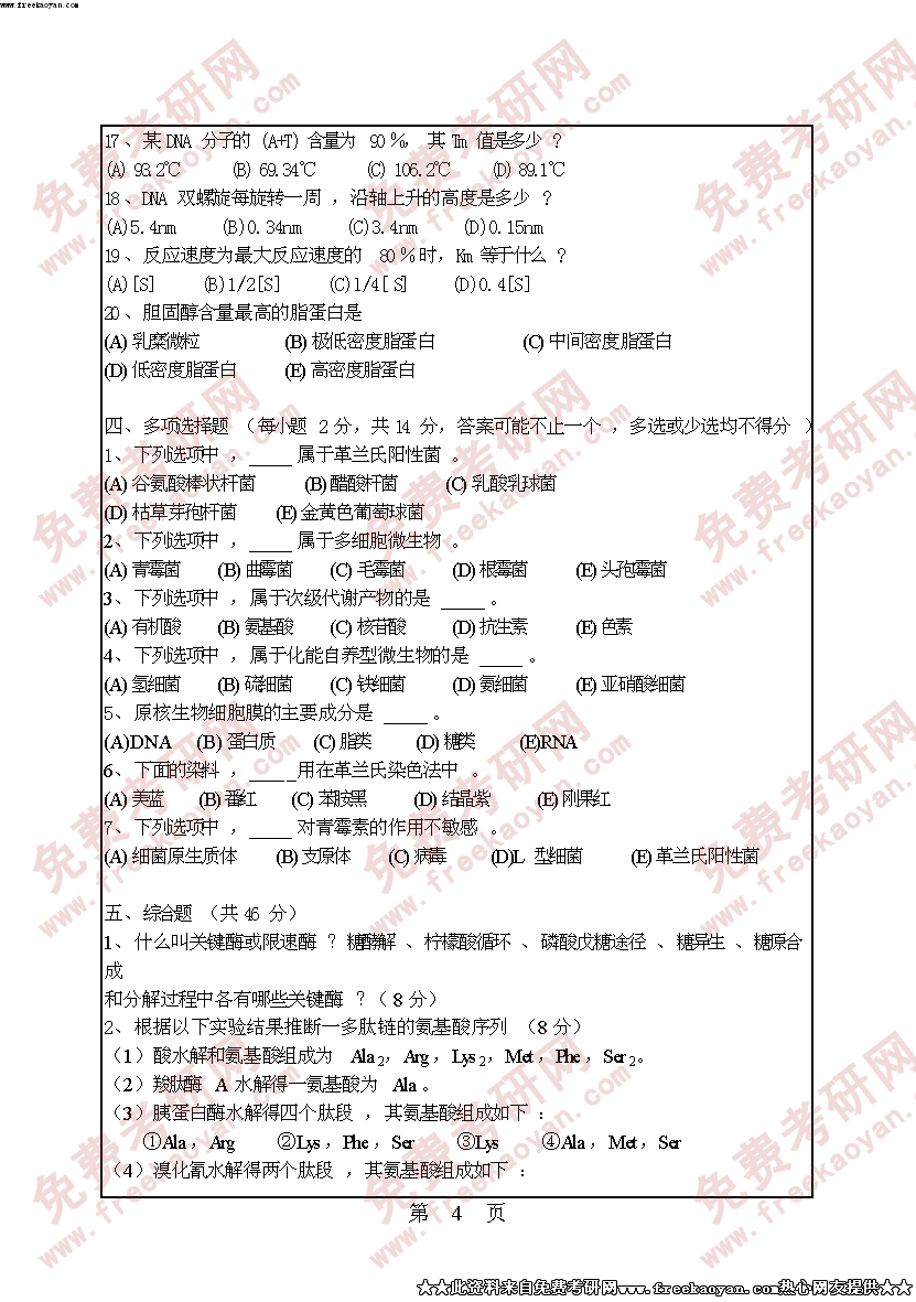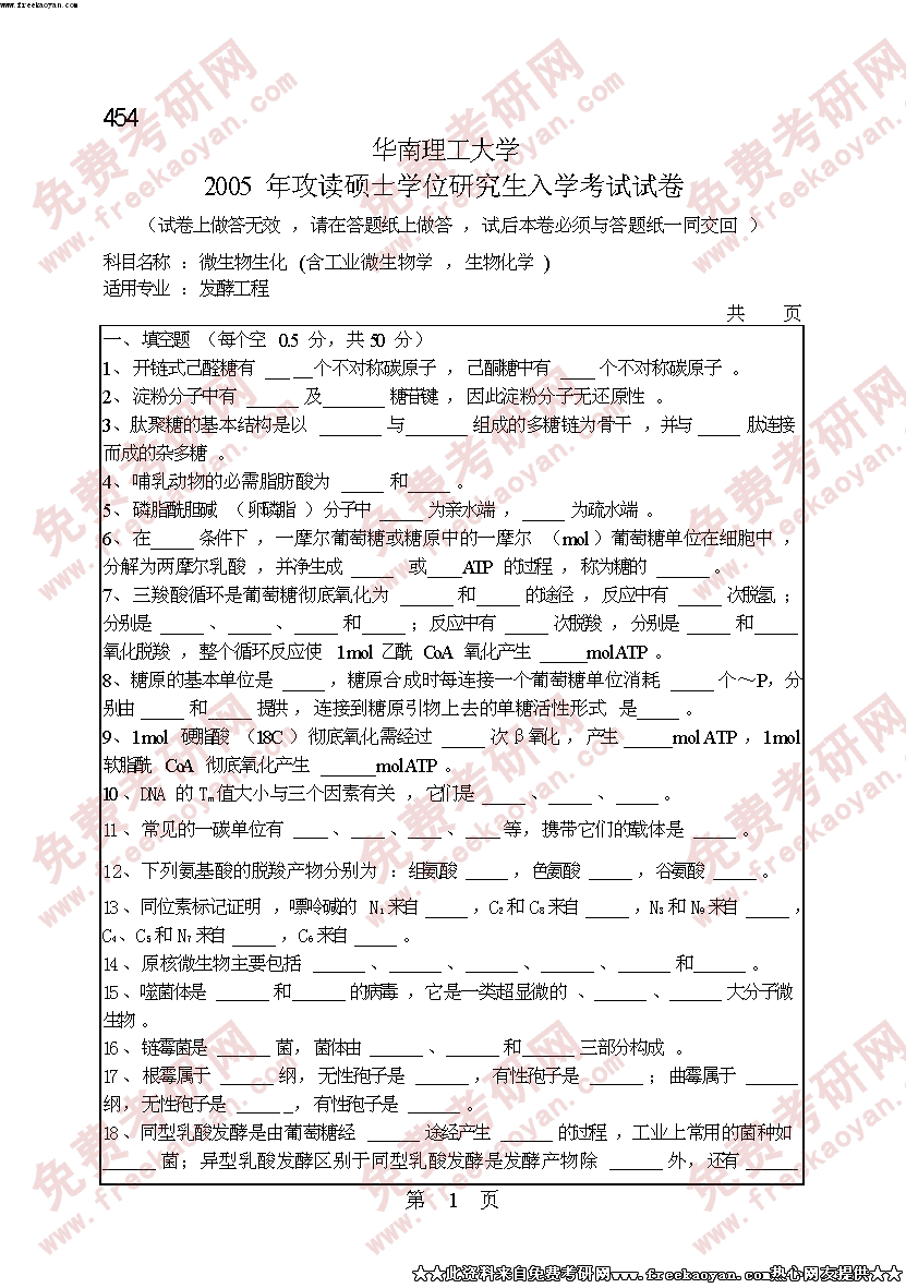 华南理工大学2005年考研真题-微生物生化含工业微生物学、生物化学
