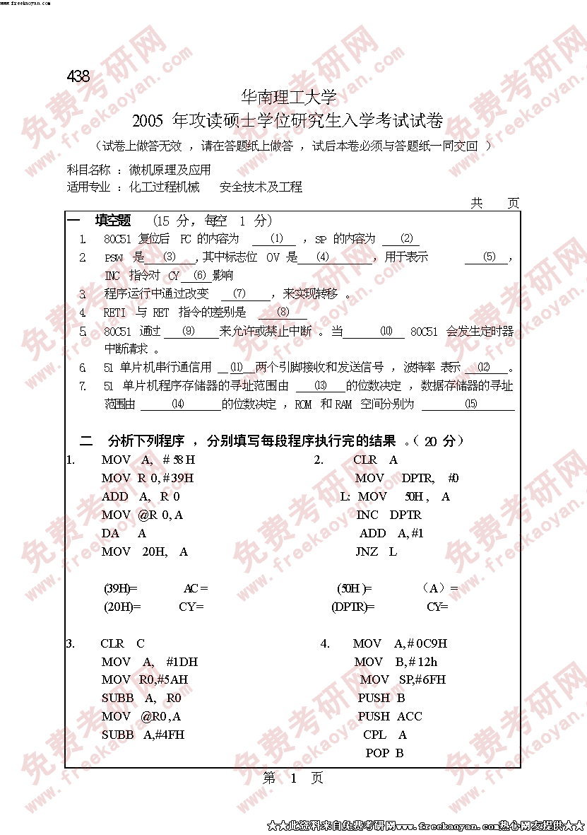 华南理工大学2005年考研真题-应用数学基础含计算方法、常微分方程