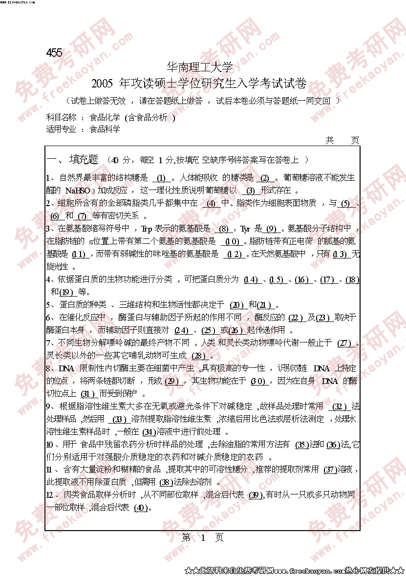 华南理工大学2005年考研真题-微生物生化含工业微生物学、生物化学