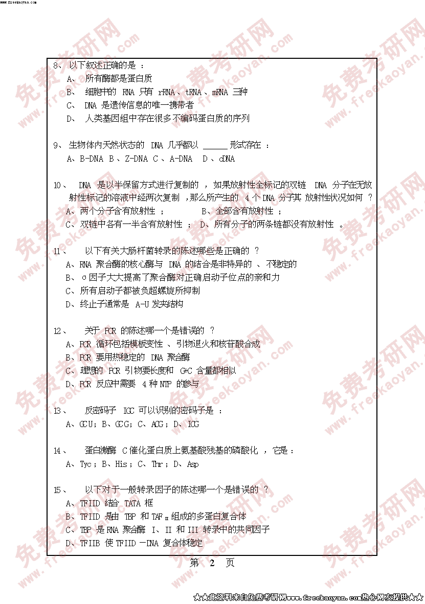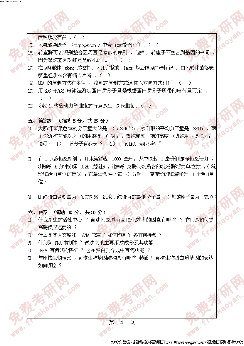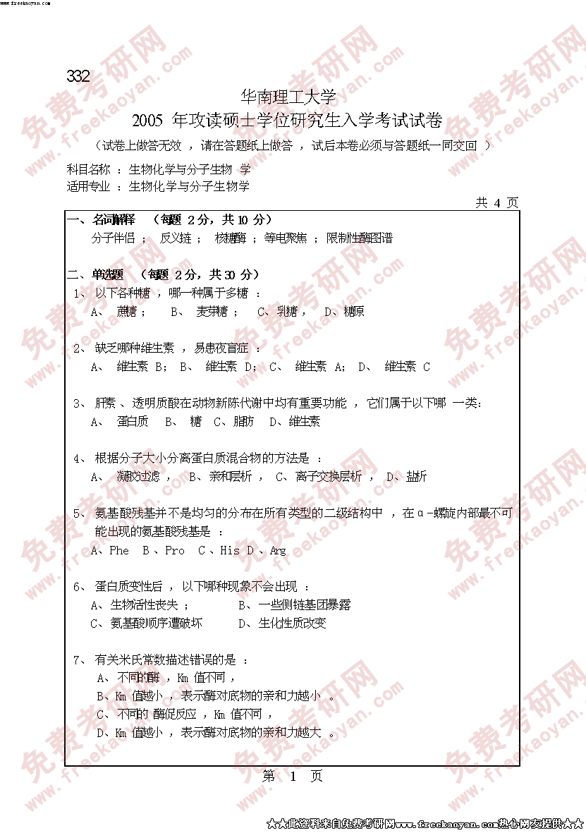 华南理工大学2005年考研真题-生物化学与分子生物学