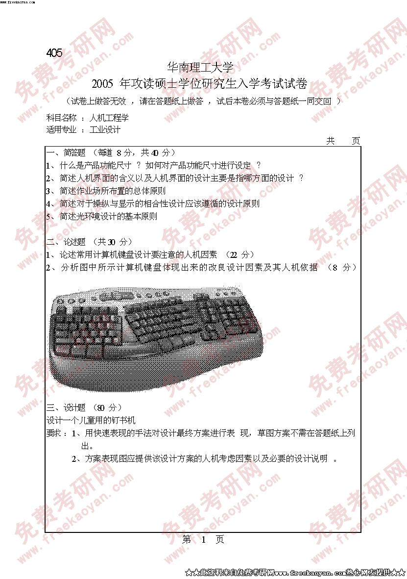 专业课考研经验 本站小编 FreeKaoyan 2018-01-22华南理工大学2005年考研真题-土质学与土力学